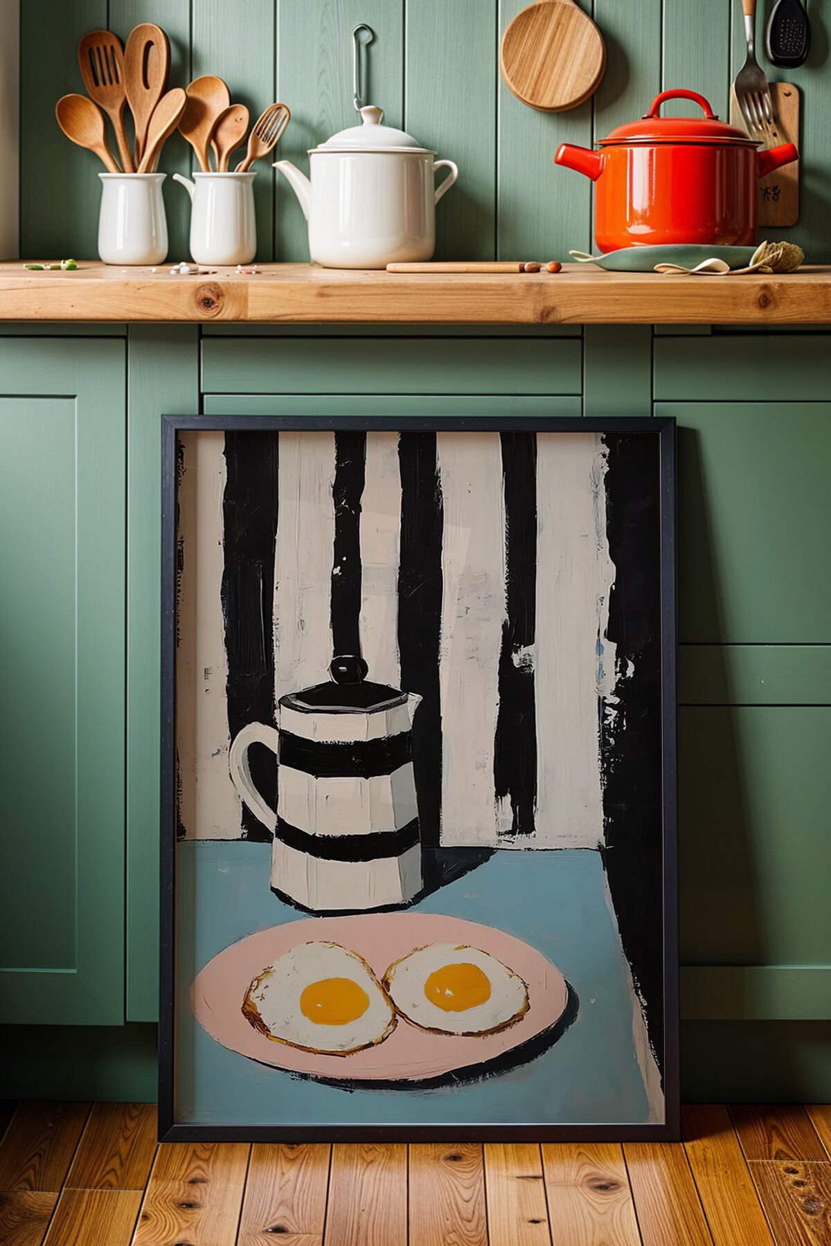 SİYAH - Kahve Mutfak Dekoru Ahşap Çerçeveli Mutfak Duvar Tablosu