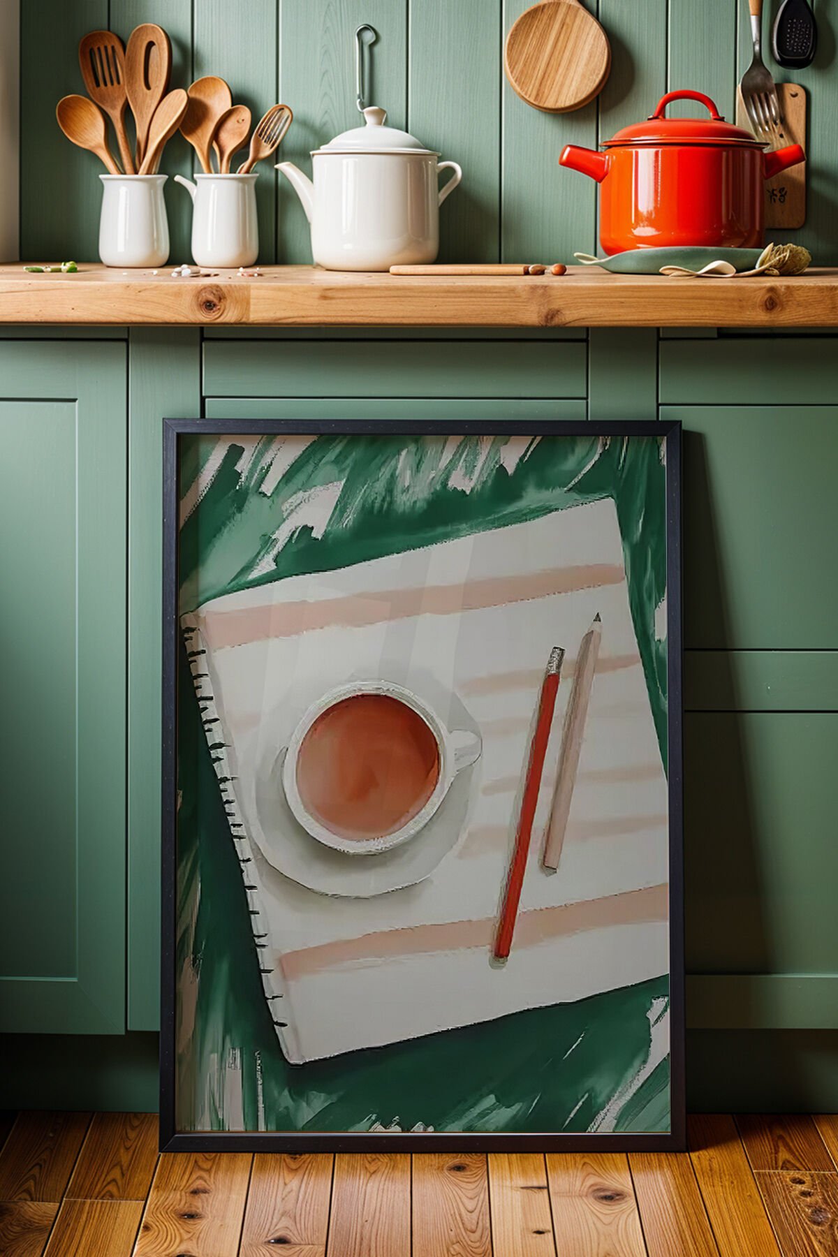 SİYAH - Kahve Mutfak Dekoru Ahşap Çerçeveli Mutfak Duvar Tablosu