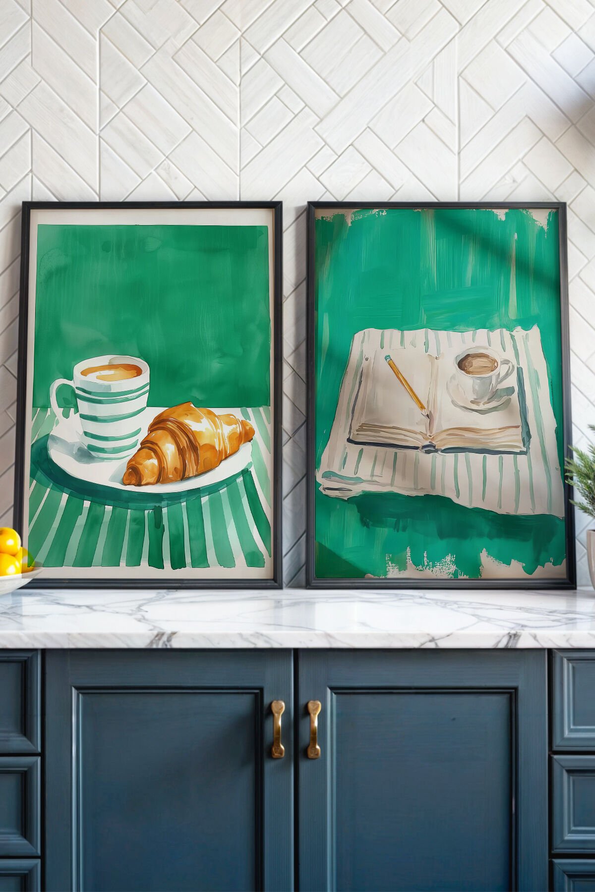 SİYAH - Kahve ve Defter Temalı 2'li Doğal Ahşap Çerçeveli Mutfak Duvar Tablosu