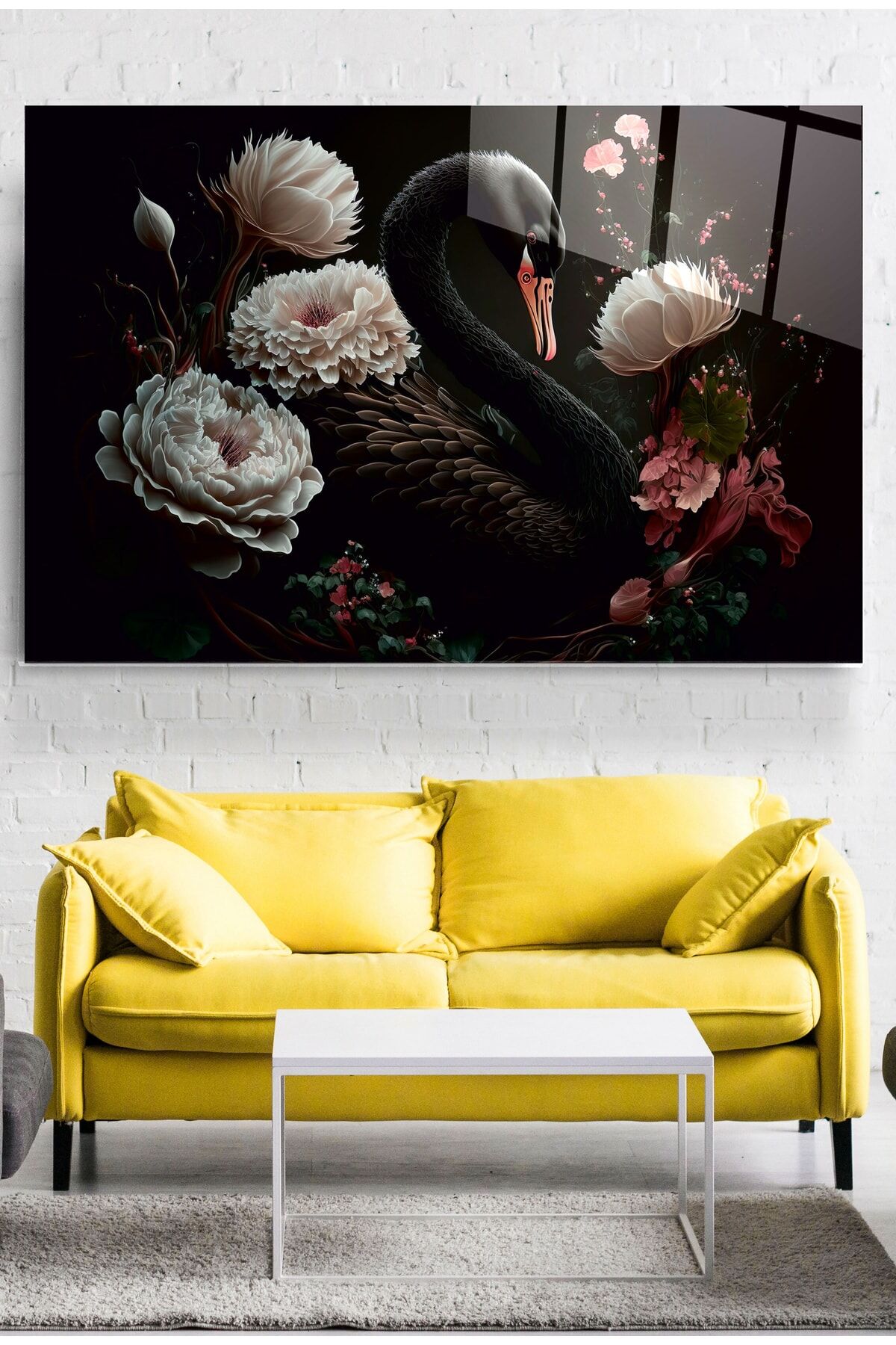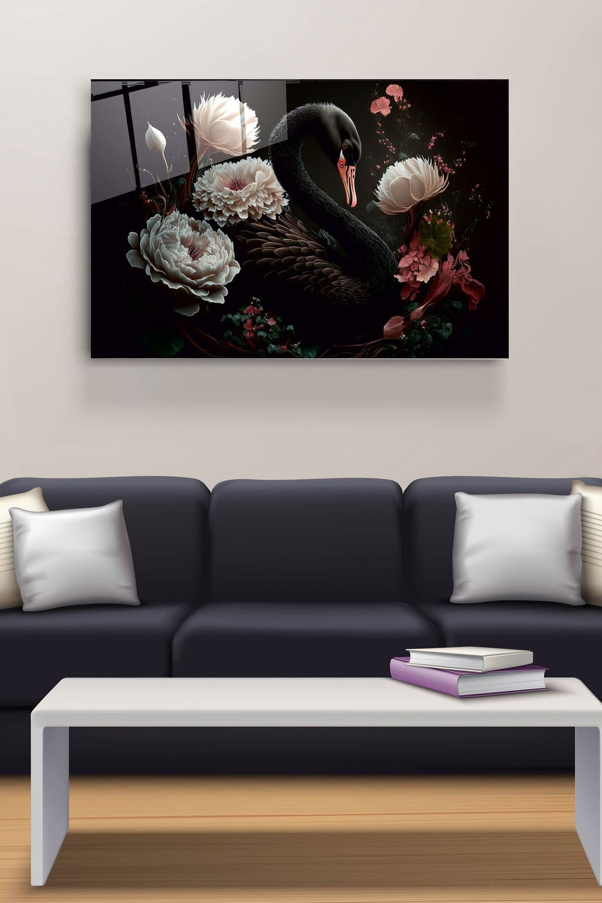 Siyah Kuğu Cam Tablo, Dekoratif Cam Tablo