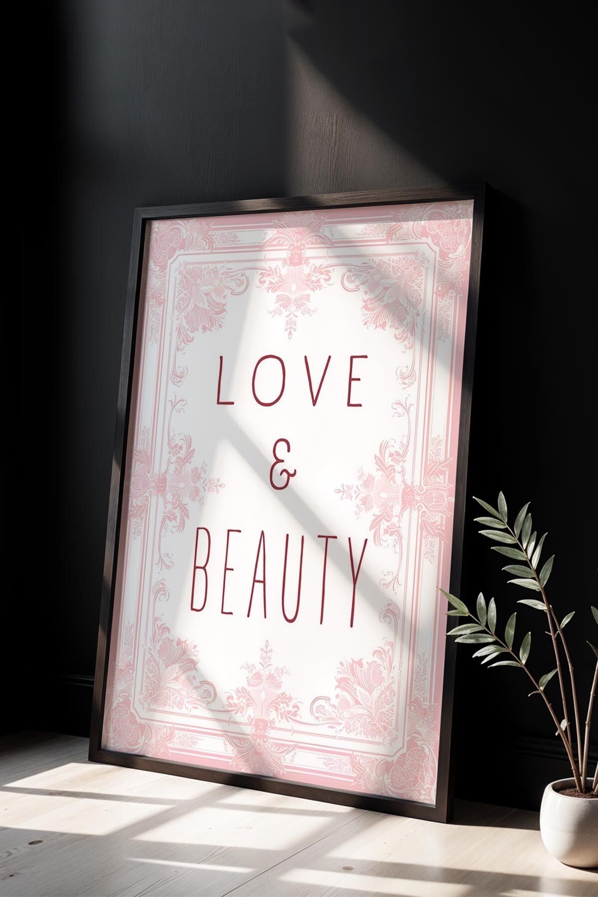 SİYAH - Love Yourself Beauty Pembe Yazı Trendy Maksimalist Sanatı Ahşap Çerçeveli Duvar Tablosu