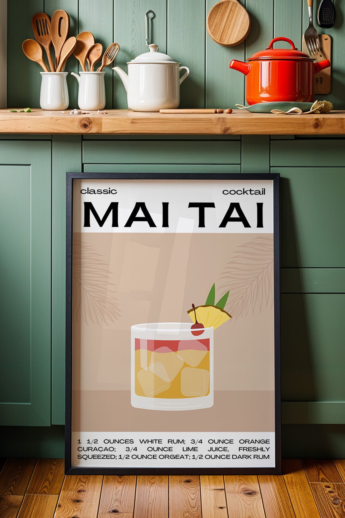 SİYAH - Mai Tai Minimalist Kokteyl Mutfak Ahşap Çerçeveli Duvar Tablosu