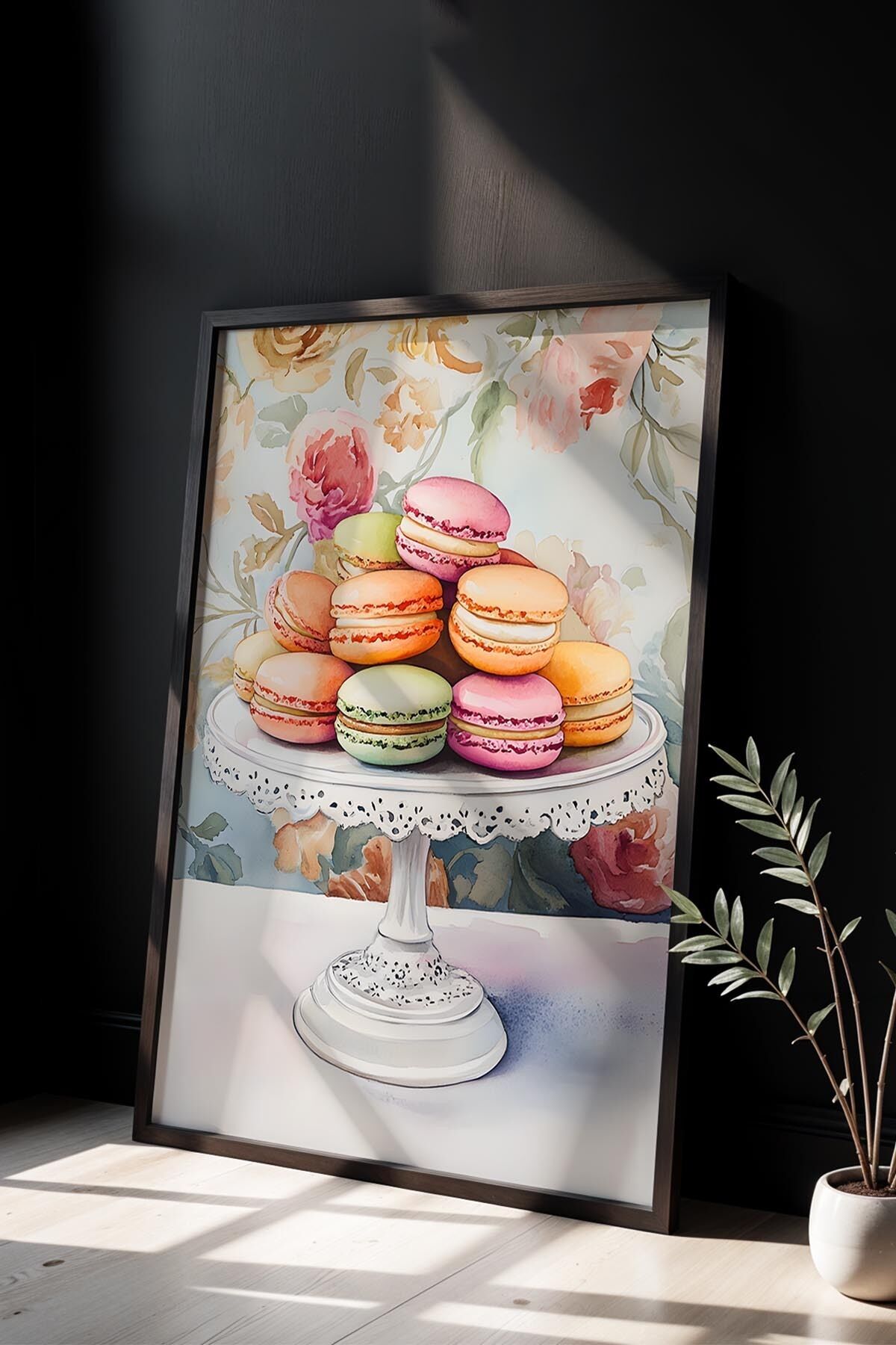 SİYAH - Makaron Tatlısı Pembe Maksimalist Sanatı Ahşap Çerçeveli Duvar Tablosu