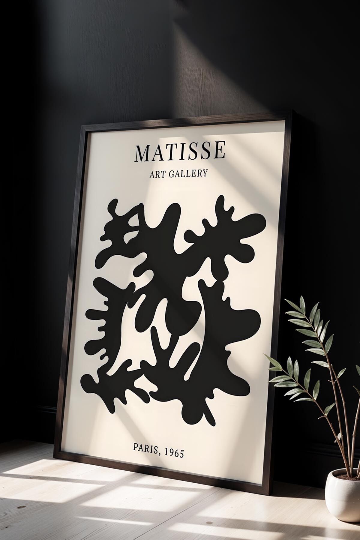 SİYAH - Minimalist Bohem Tarzı Modern Sanat Matisse Doğal Ahşap Çerçeveli Duvar Tablosu