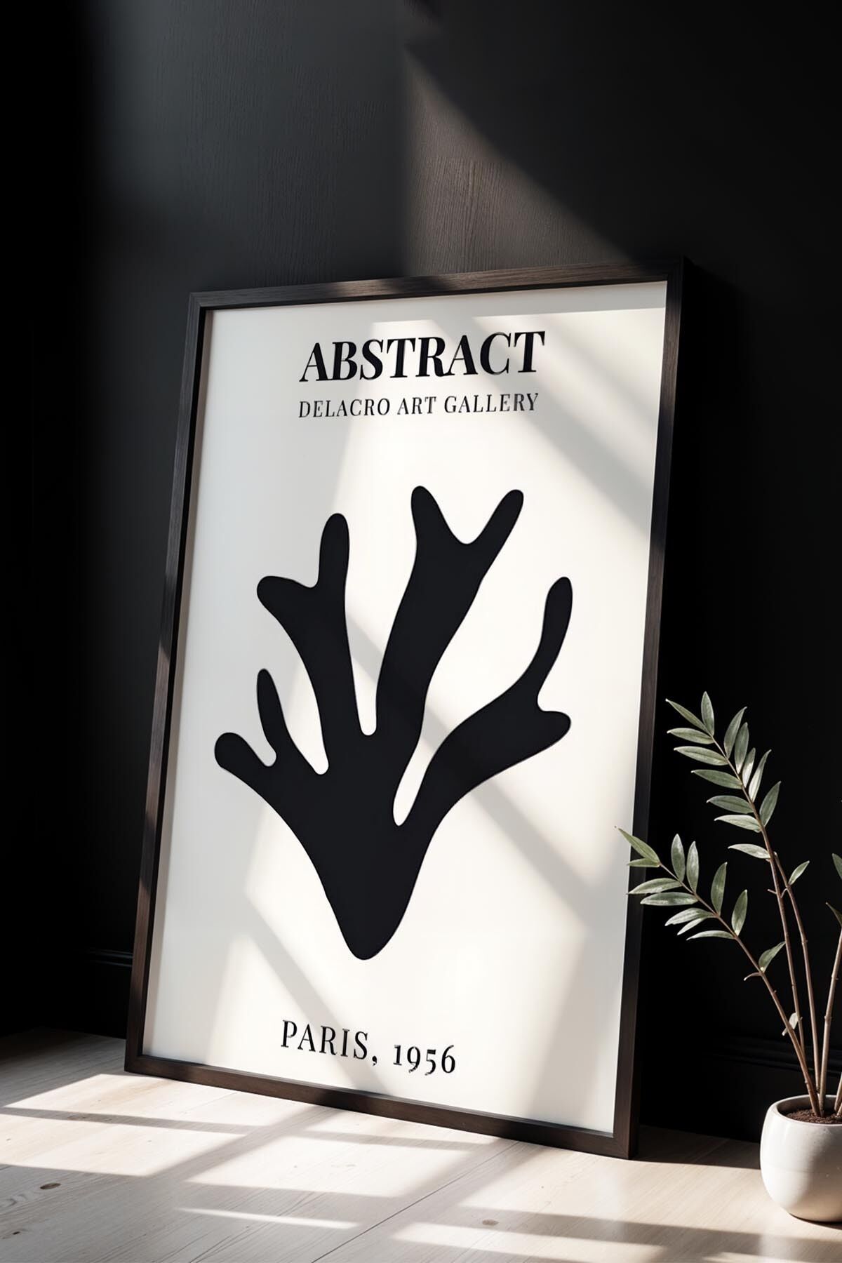 SİYAH - Minimalist Bohem Tarzı Modern Sanat Matisse Doğal Ahşap Çerçeveli Duvar Tablosu