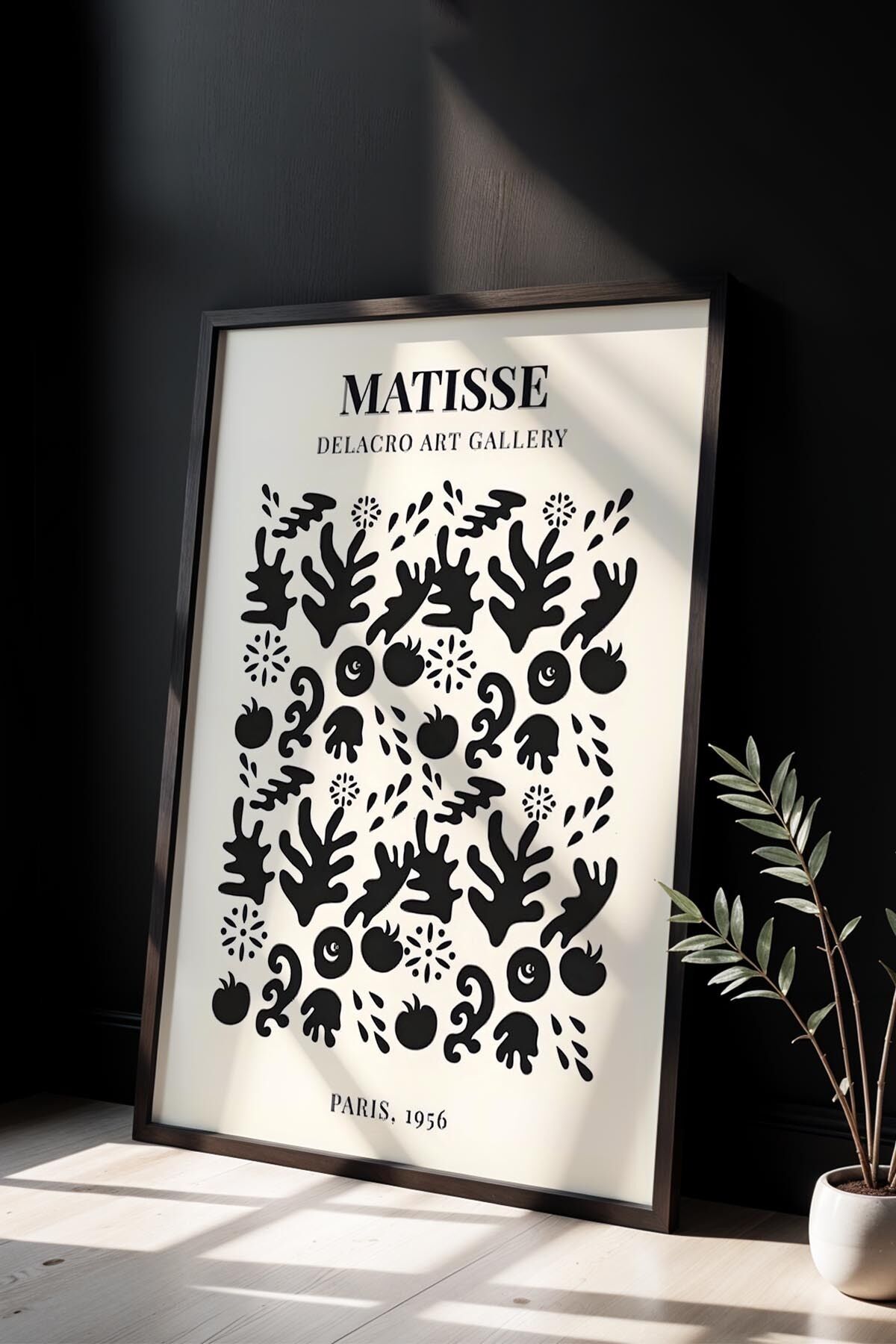SİYAH - Minimalist Bohem Tarzı Modern Sanat Matisse Doğal Ahşap Çerçeveli Duvar Tablosu