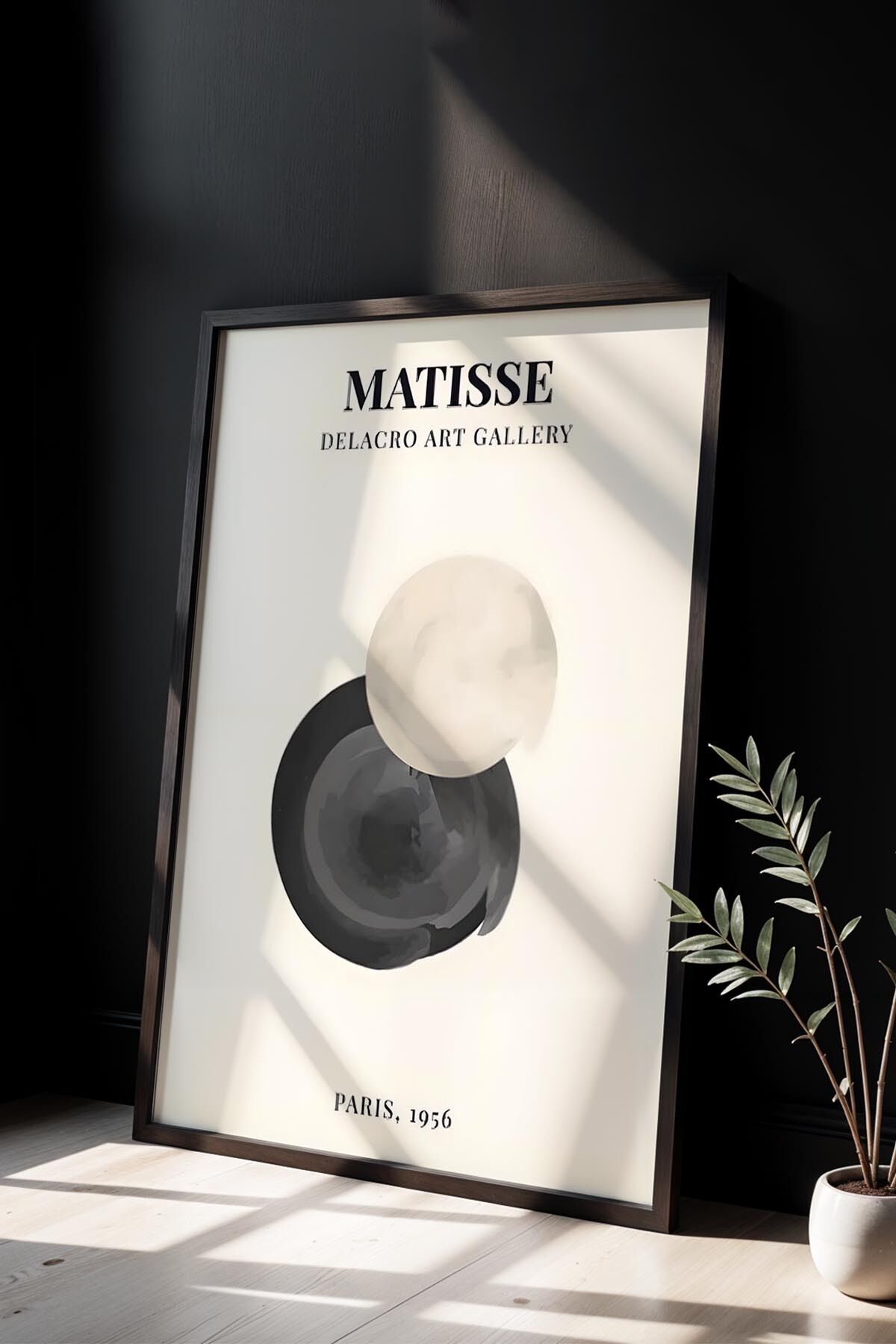 SİYAH - Minimalist Bohem Tarzı Soyut Sanat Matisse Doğal Ahşap Çerçeveli Duvar Tablosu