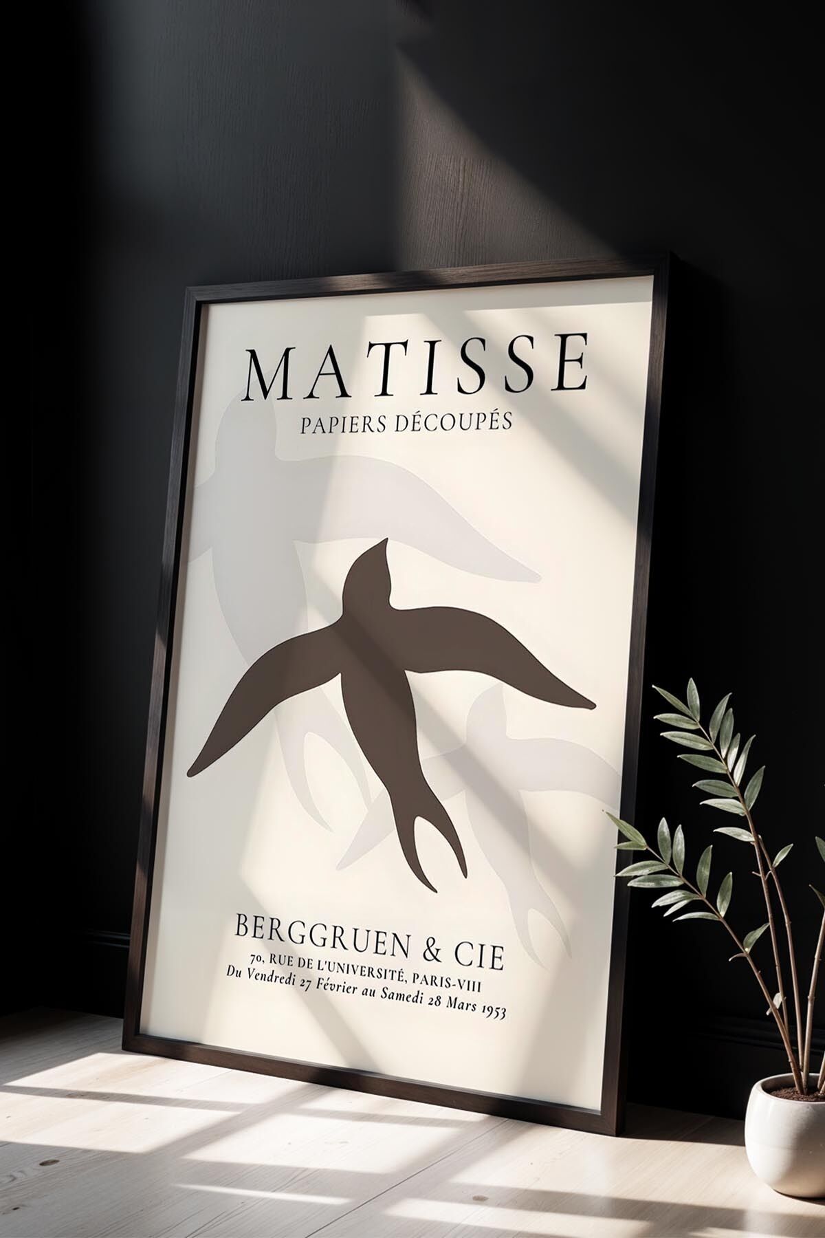 SİYAH - Minimalist Bohem Tarzı Soyut Sanat Matisse Doğal Ahşap Çerçeveli Duvar Tablosu