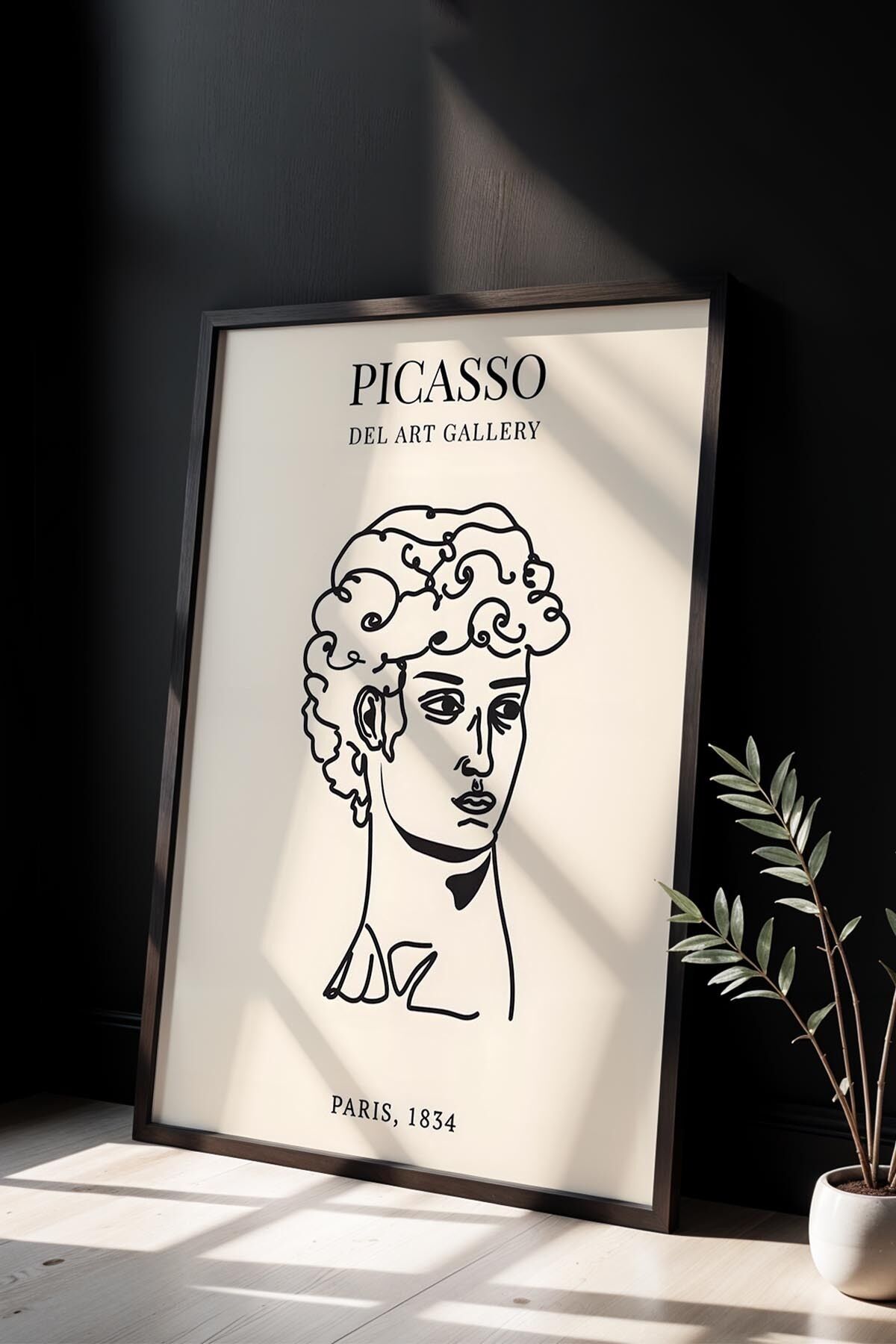 SİYAH - Minimalist Çizim Erkek Portresi Soyut Sanat Matisse Doğal Ahşap Çerçeveli Duvar Tablosu