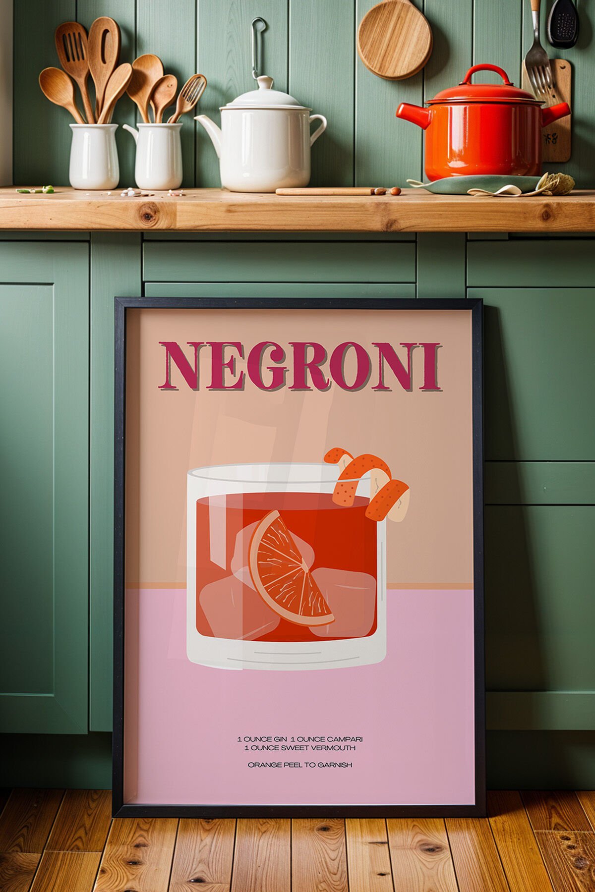 SİYAH - Negroni Tarifi Modern Mutfak Ahşap Çerçeveli Duvar Tablosu