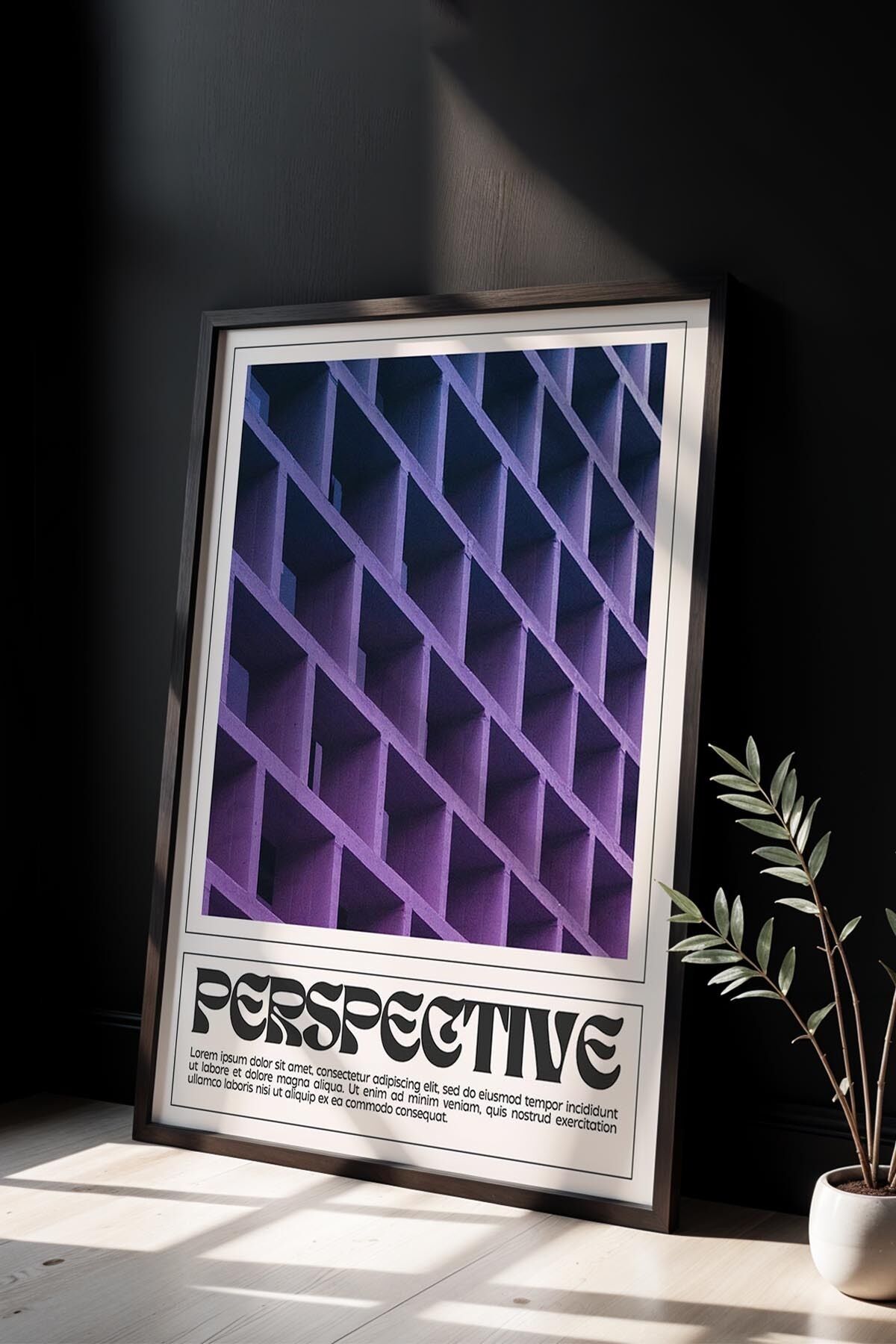 SİYAH - Perspektif Mor Mimar Trendy Maksimalist Sanatı Ahşap Çerçeveli Duvar Tablosu