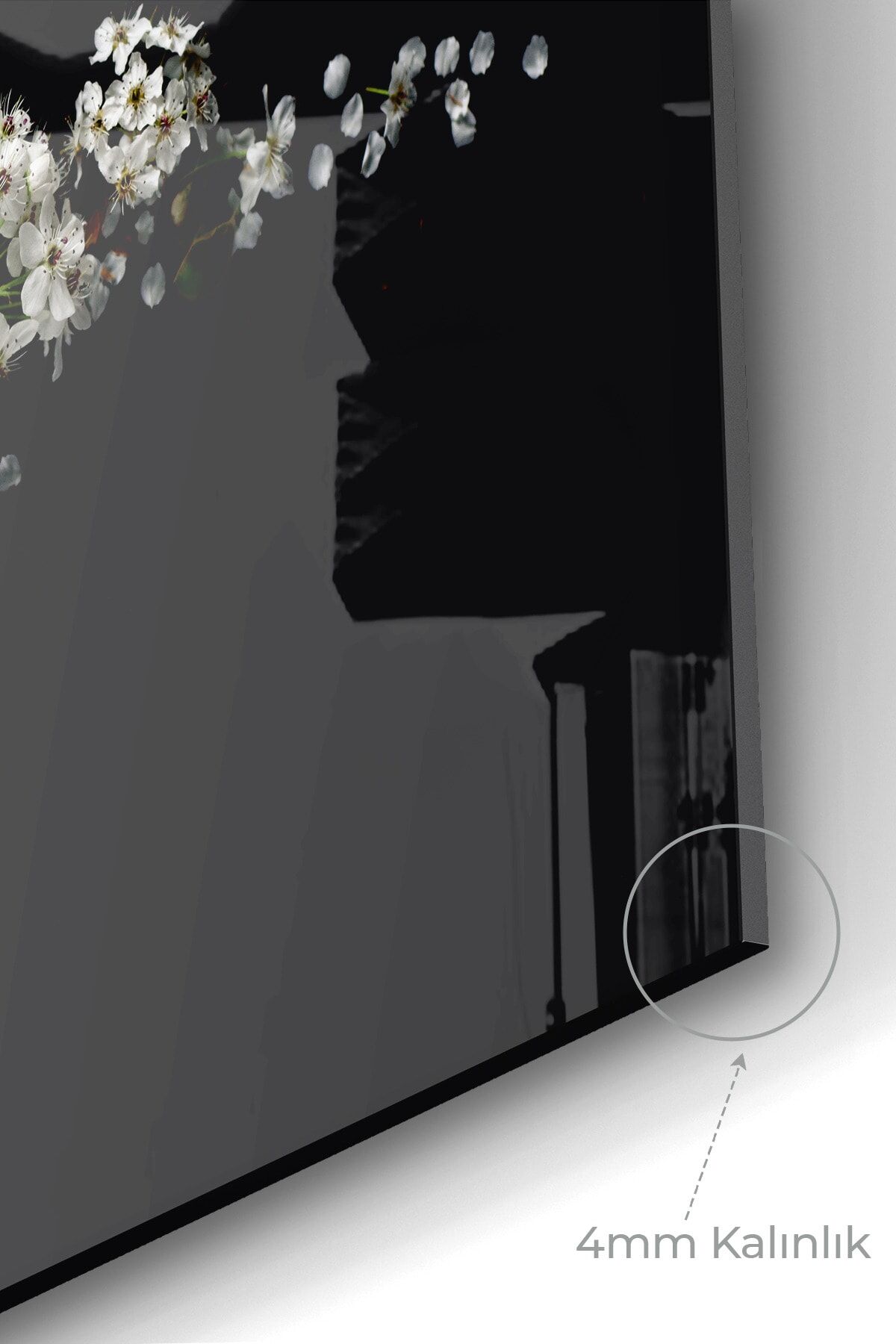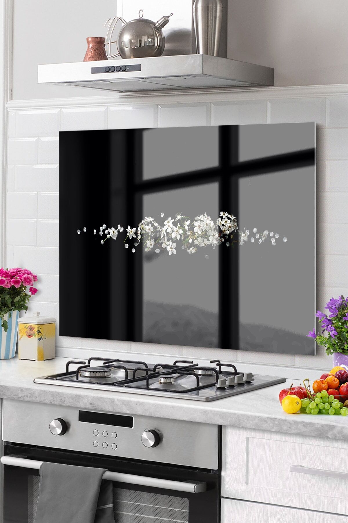 Siyah - Premium Mutfak Cam Ocak Arkası Koruyucu Tezgah Ankastre Arkası Koruyucu | Çiçek Siyah