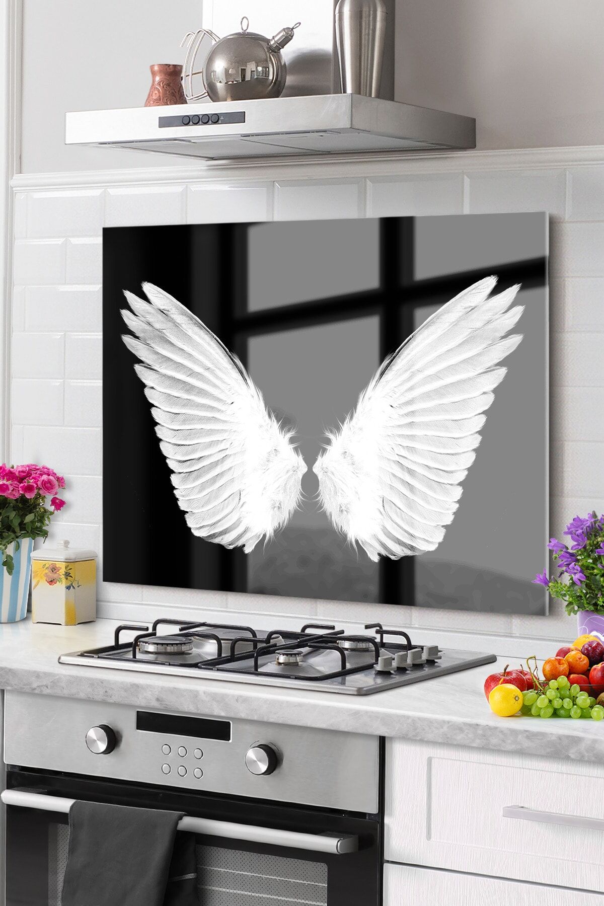Siyah - Premium Mutfak Cam Ocak Arkası Koruyucu Tezgah Ankastre Arkası Koruyucu | Melek Kanadı
