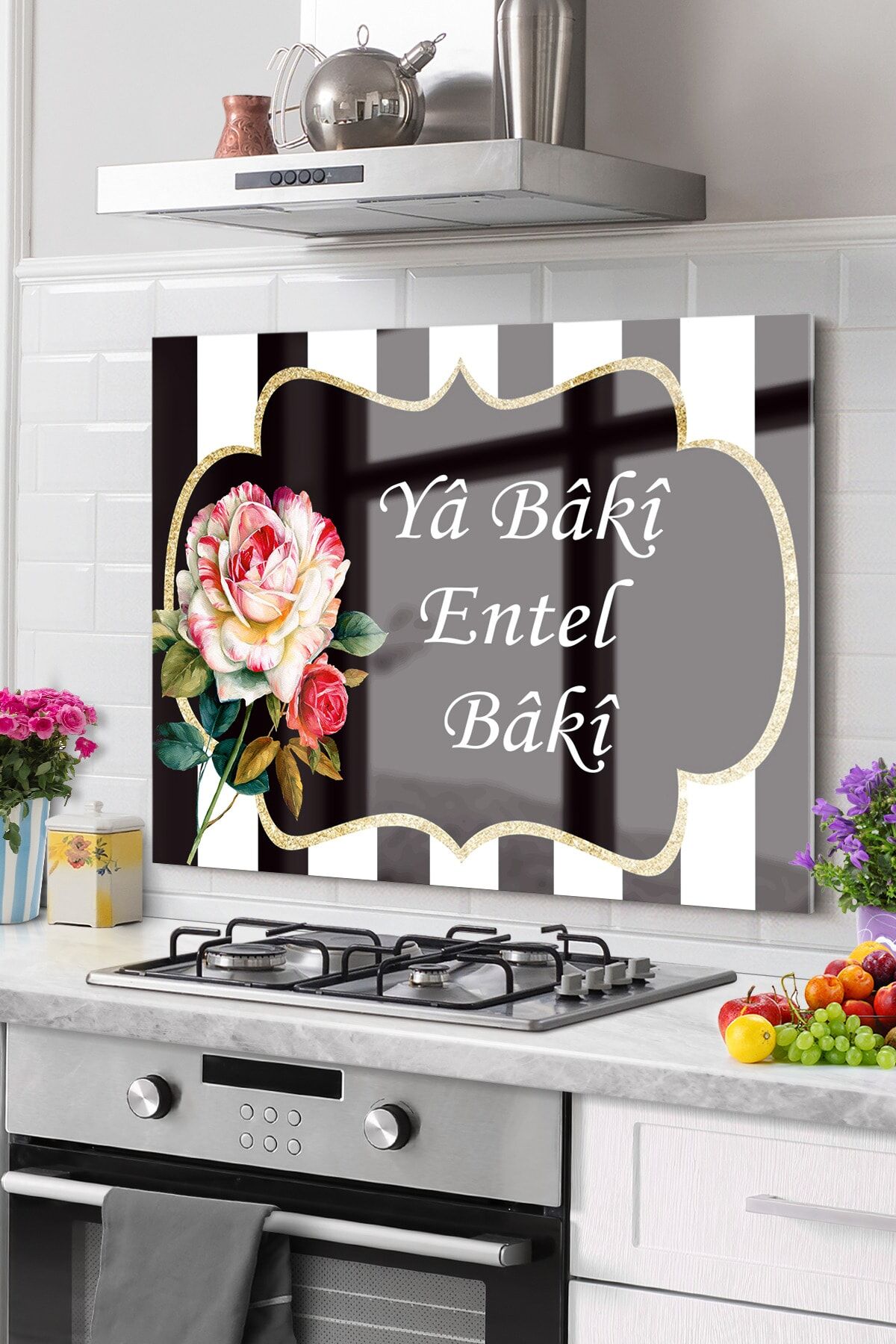 Siyah - Premium Mutfak Cam Ocak Arkası Koruyucu Tezgah Ankastre Arkası Koruyucu | Ya Entel Ya Baki
