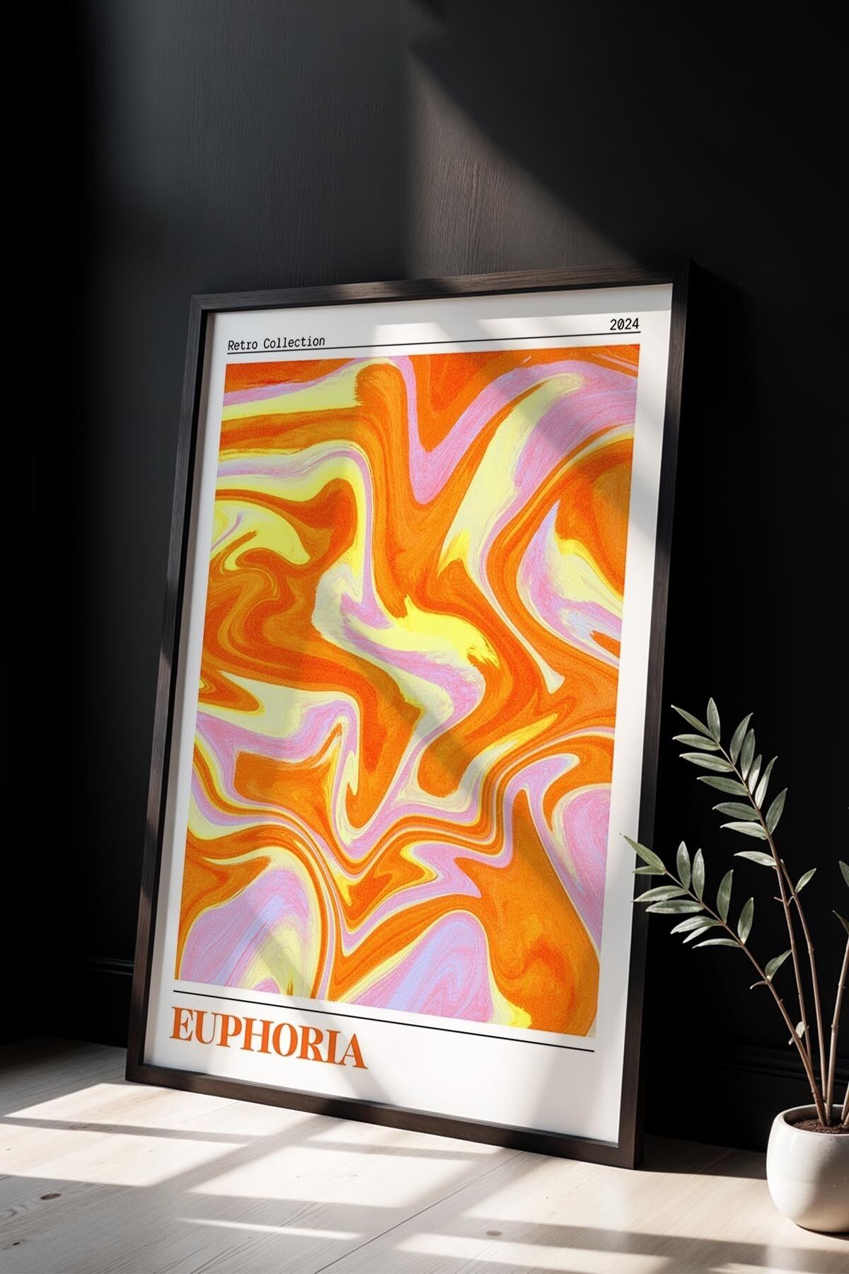 SİYAH - Renkli Dalga Turuncu Trendy Maksimalist Sanatı Ahşap Çerçeveli Duvar Tablosu