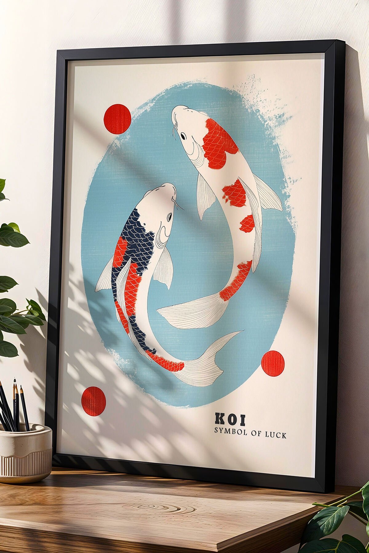 SİYAH - Sakinlik ve Akış: Koi Balıkları Modern Zen Sanatı Denge Doğal Ahşap Çerçeveli Tablo