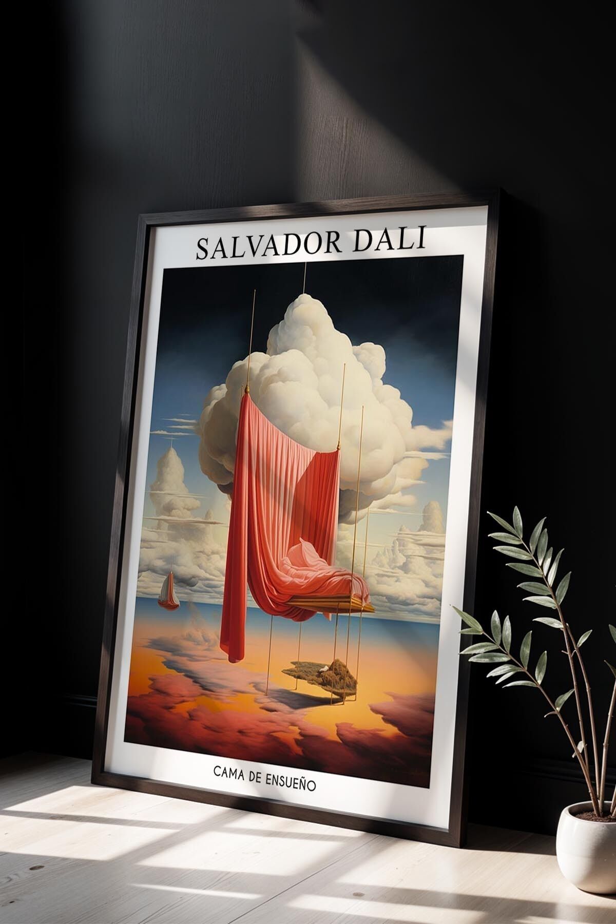 SİYAH - Salvador Dali Bulutlar ve Rüya Perdesi Ahşap Çerçeveli Duvar Tablosu