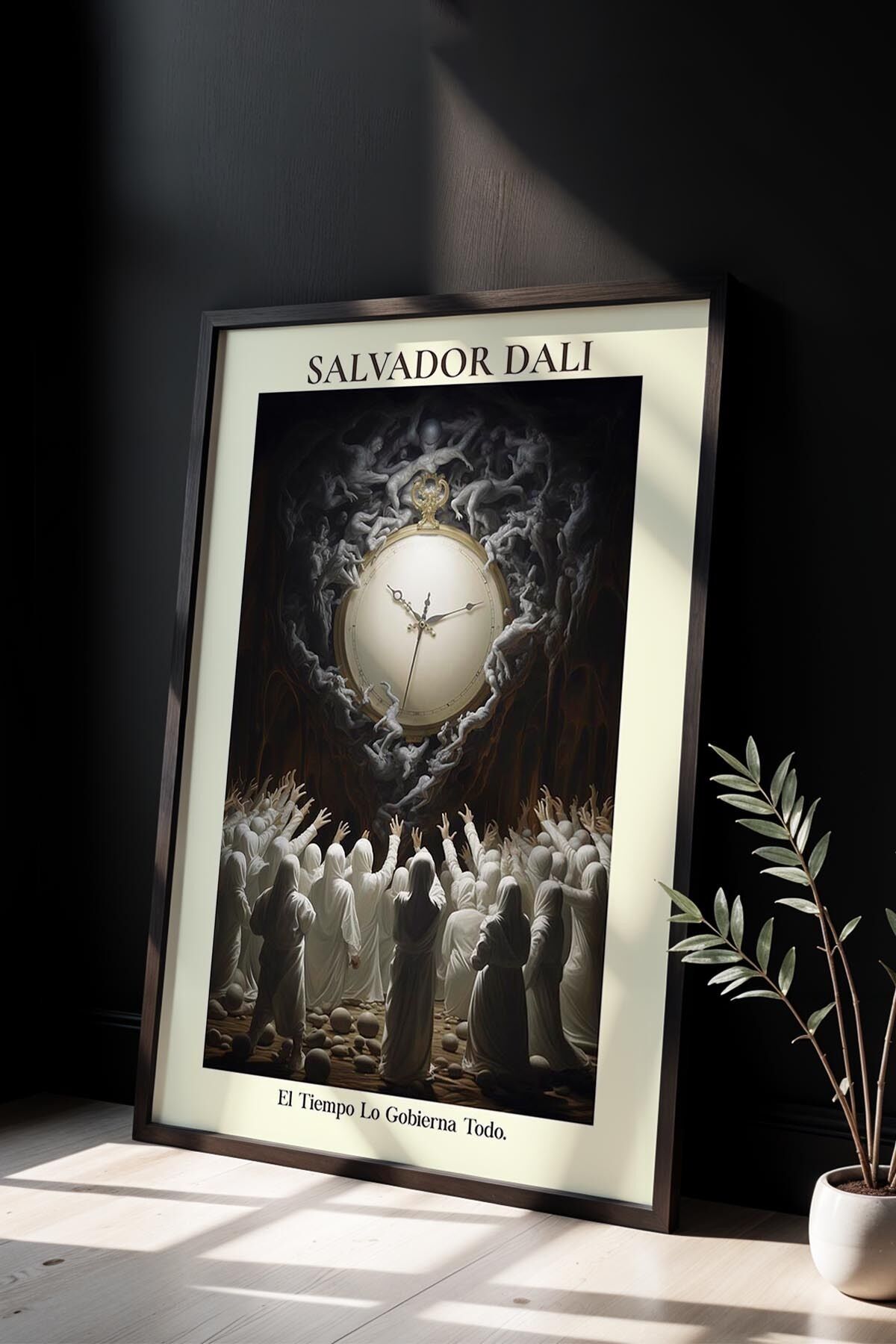 SİYAH - Salvador Dali Dans Eden Ruhlar ve Zaman Ahşap Çerçeveli Duvar Tablosu
