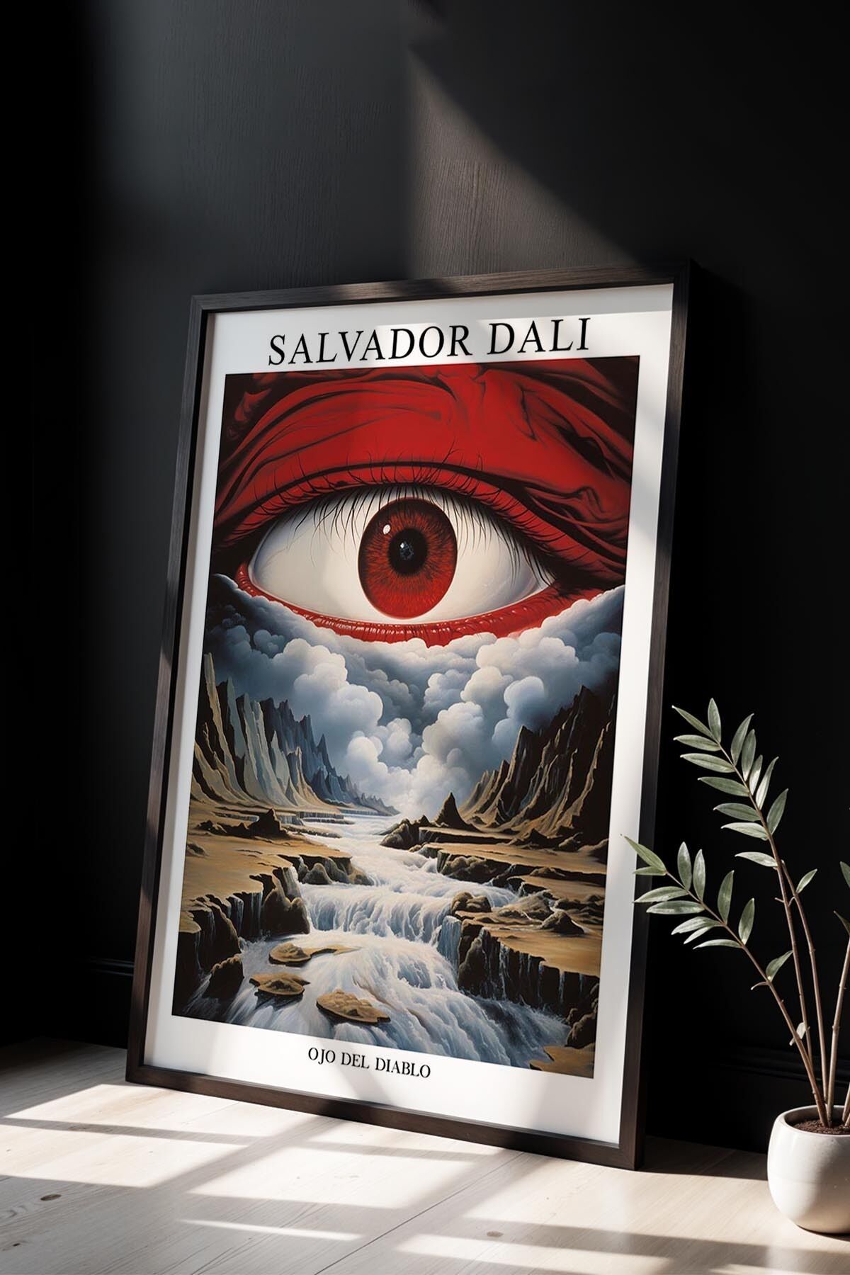 SİYAH - Salvador Dali Kırmızı Göz ve Bulutlar Ahşap Çerçeveli Duvar Tablosu