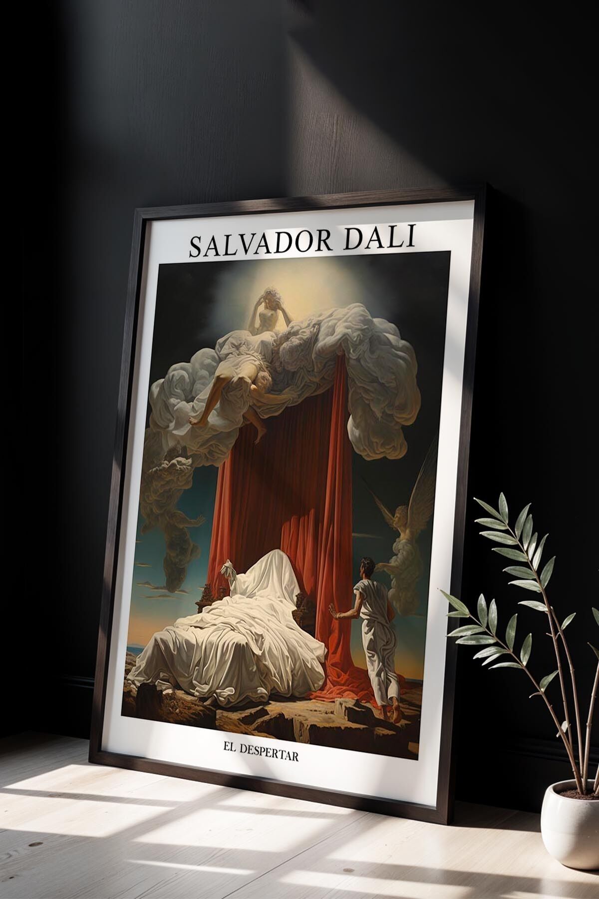SİYAH - Salvador Dali Uyuyan Kadın ve Perdeler Ahşap Çerçeveli Duvar Tablosu