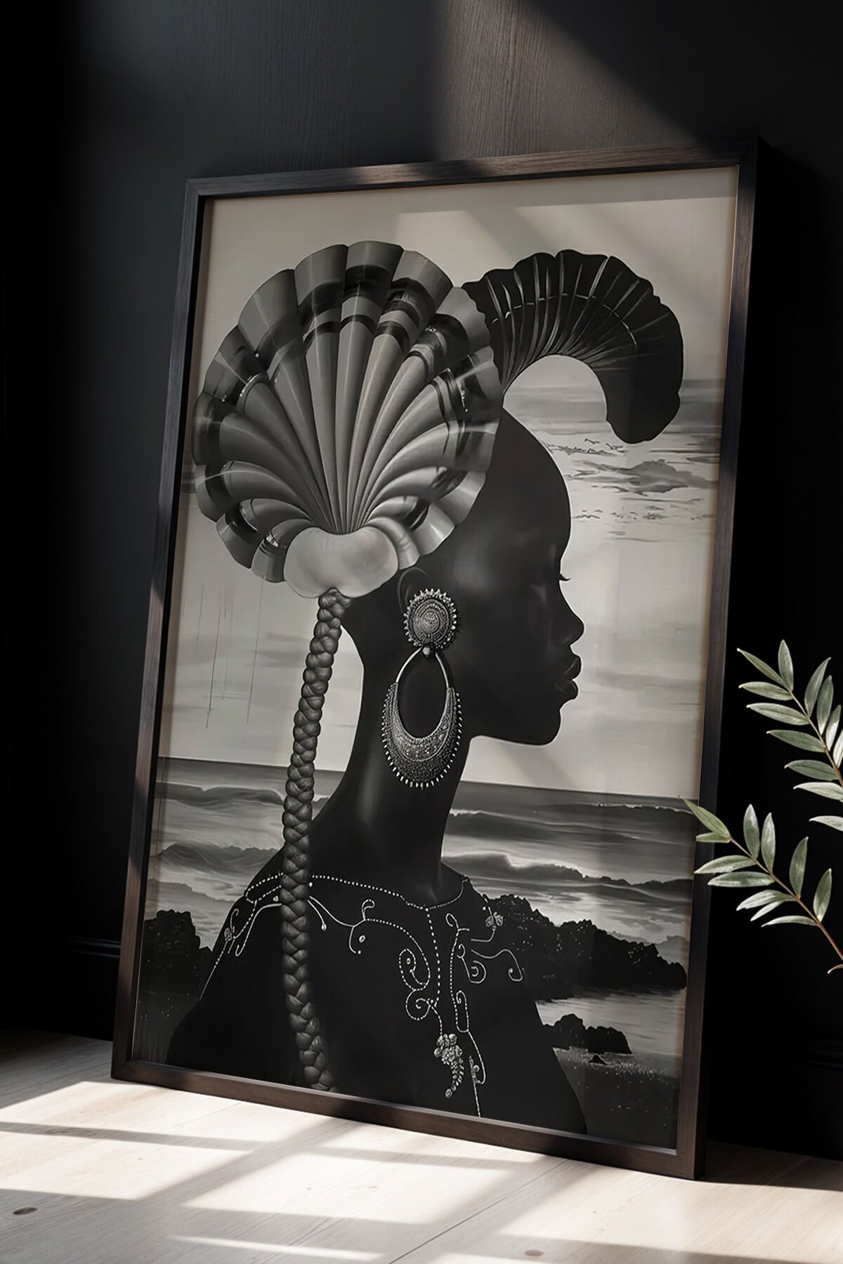 SİYAH - Siyah Beyaz Doğal Ahşap Çerçeveli Duvar Tablosu