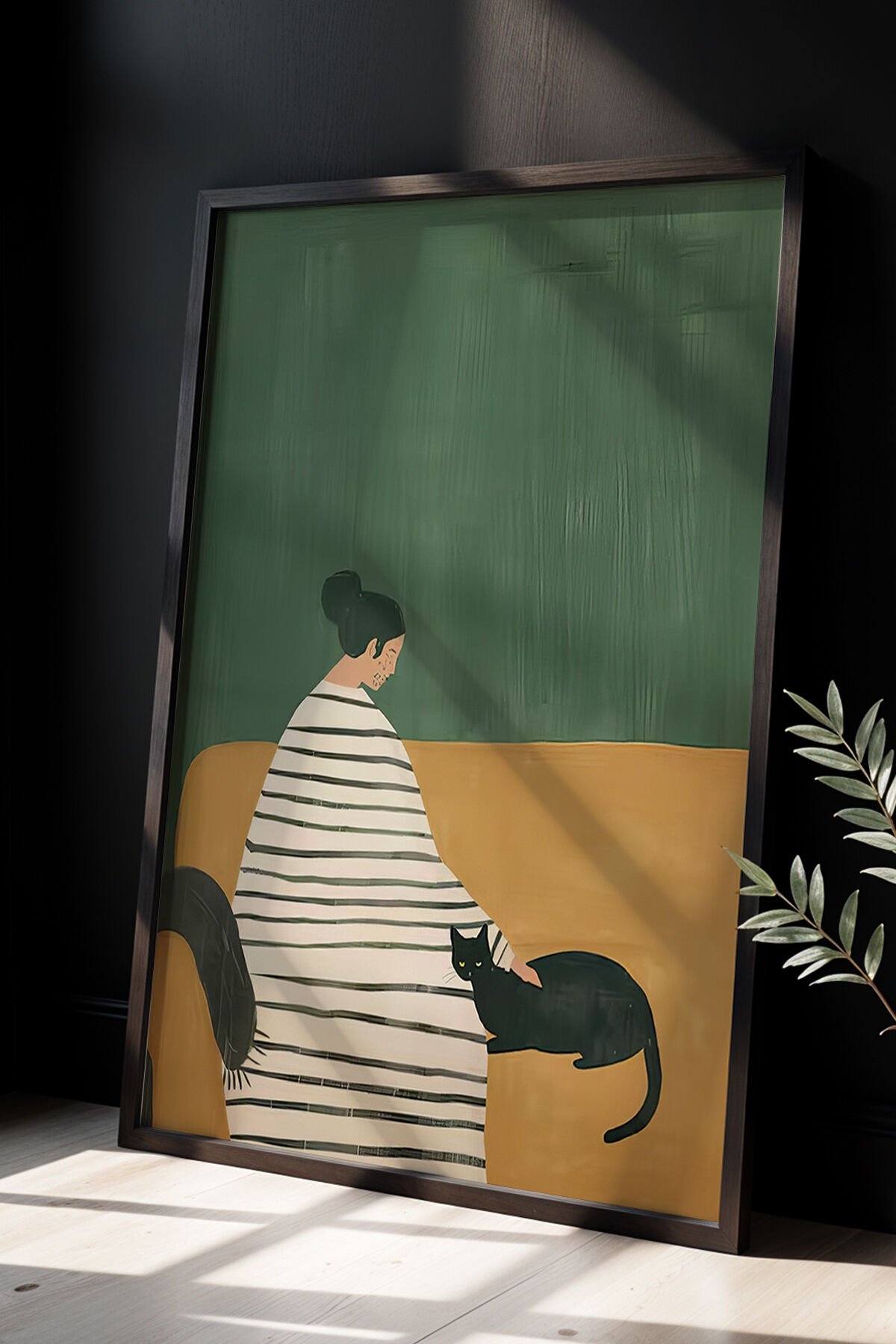 SİYAH - Soyut Evcil Hayvan İllüstrasyonu Ahşap Çerçeveli Duvar Tablosu