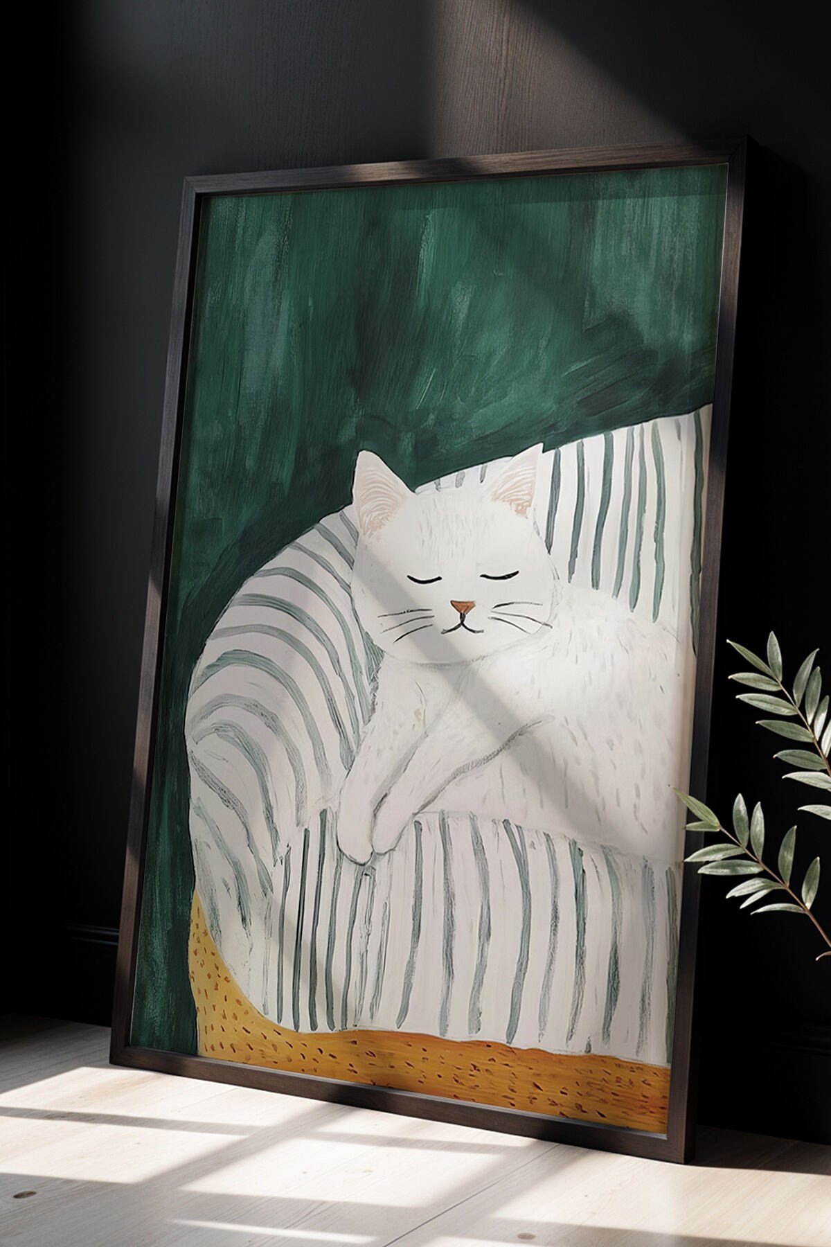 SİYAH - Soyut Kedi Sanatı Ahşap Çerçeveli Duvar Kedi Tablosu