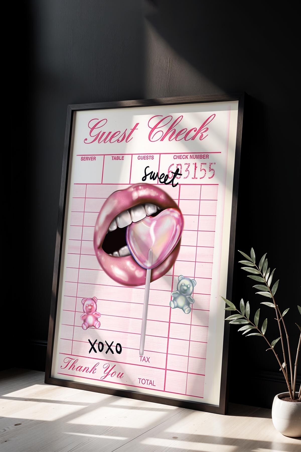 SİYAH - Sweet Club Grid Kolaj Trendy Maksimalist Sanatı Ahşap Çerçeveli Duvar Tablosu