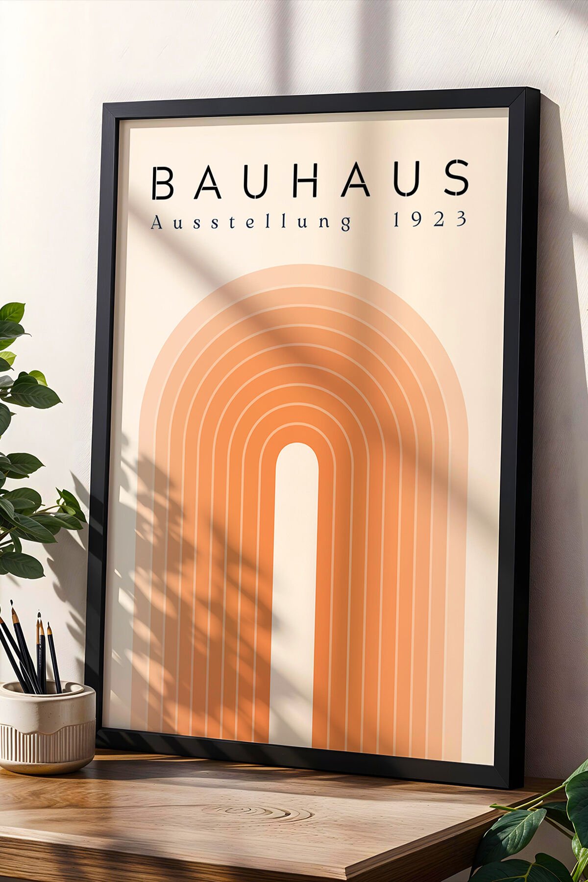 SİYAH - Turuncu Bauhaus Stili Minimalist Terakota Vintage Geometrik Sanat Ahşap Çerçeveli Duvar Tablosu