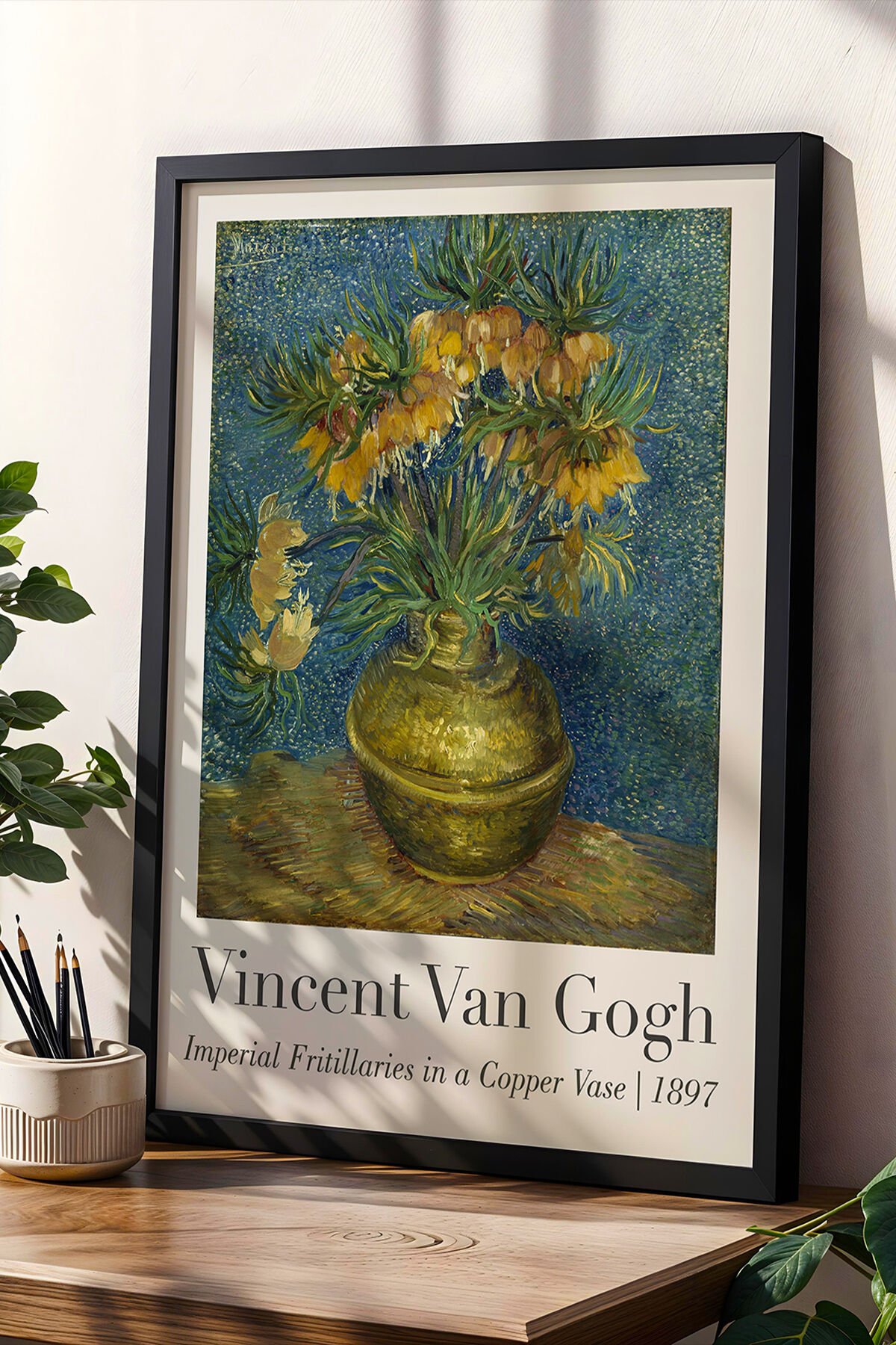 SİYAH - Vincent Van Gogh Bakır Vazoda İmparator Çiğdemleri 1897 Vintage Ahşap Çerçeveli Duvar Tablosu