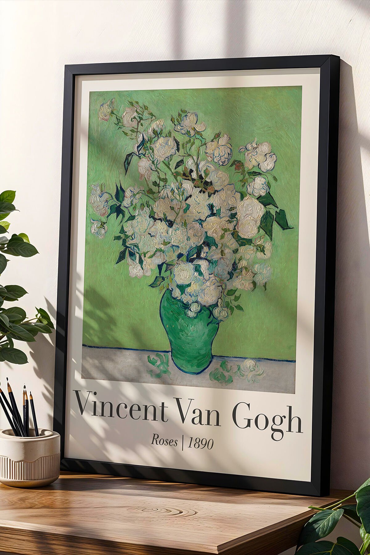 SİYAH - Vincent Van Gogh Güller 1890 Vintage Doğal Ahşap Çerçeveli Duvar Tablosu