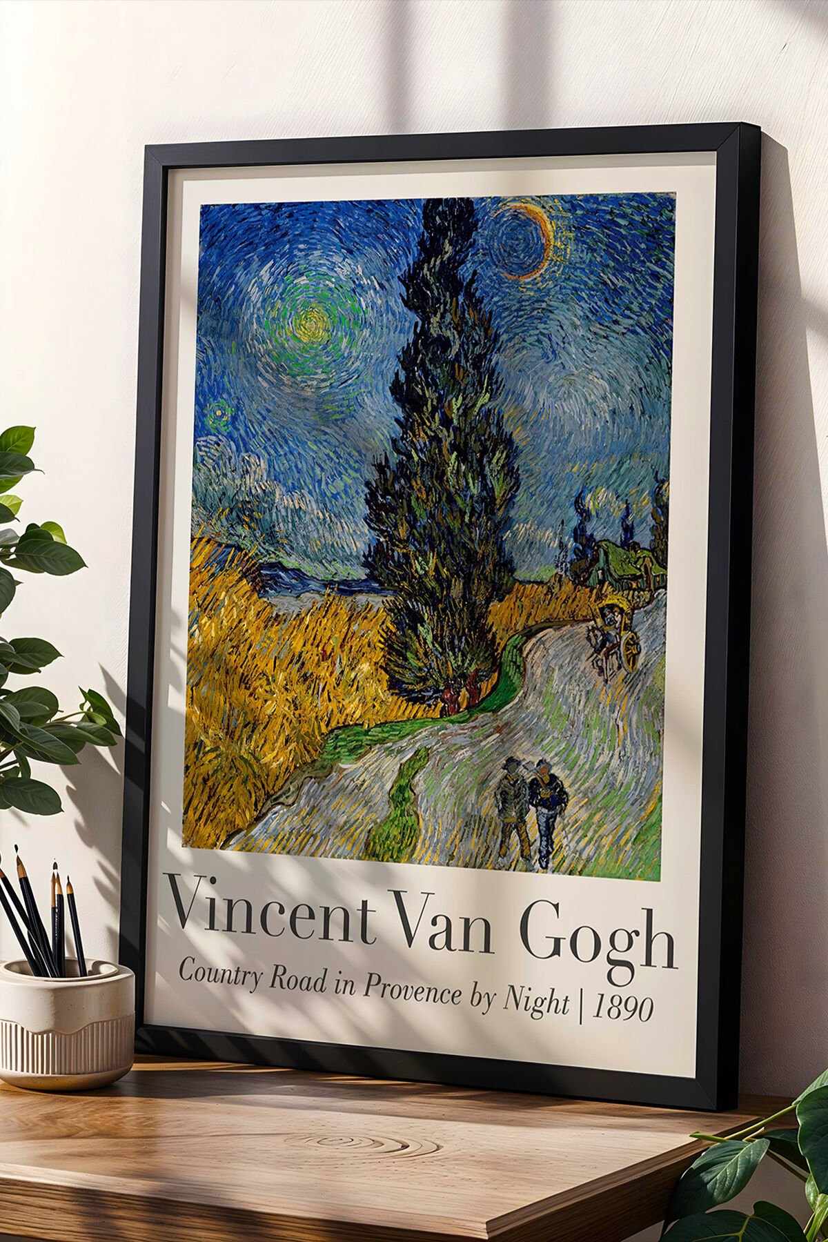 SİYAH - Vincent Van Gogh Provence’da Gece Yolculuğu 1890 Vintage Ahşap Çerçeveli Duvar Tablosu