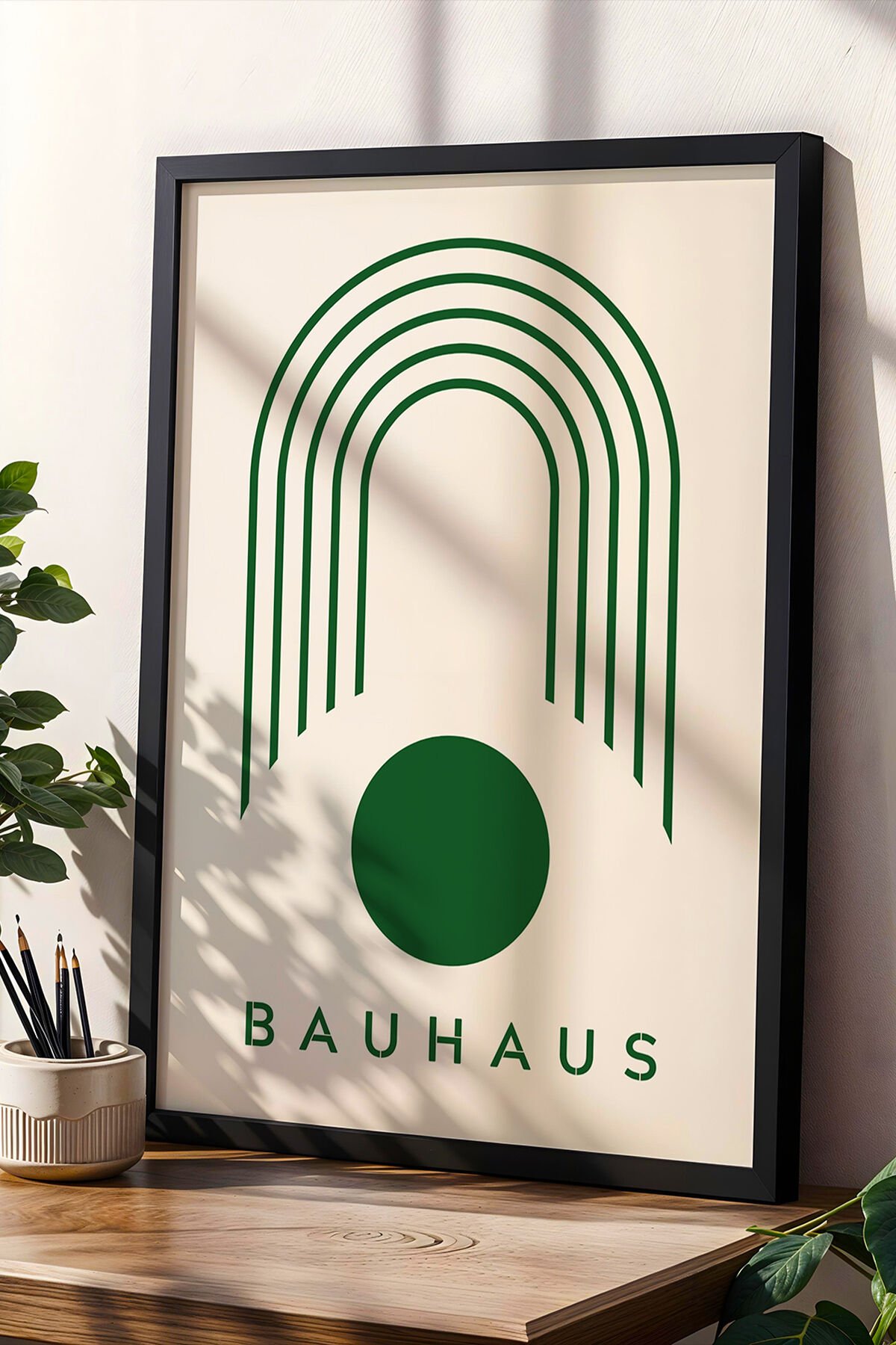SİYAH - Yeşil Bauhaus Stili Minimalist Geometrik Sanat Abstract Boho Ahşap Çerçeveli Duvar Tablosu