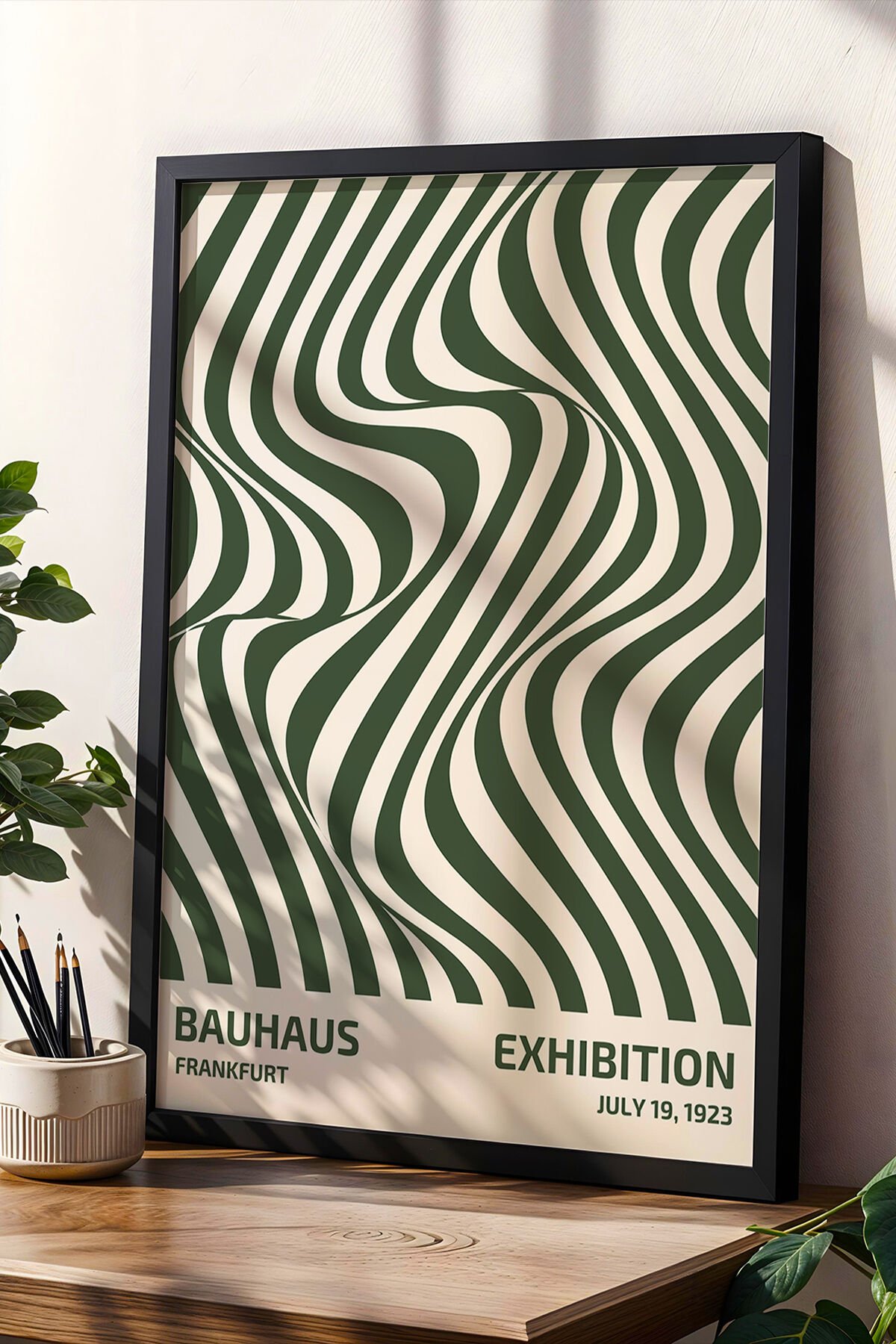 SİYAH - Yeşil Bauhaus Stili Minimalist Geometrik Sanat Abstract Boho Ahşap Çerçeveli Duvar Tablosu