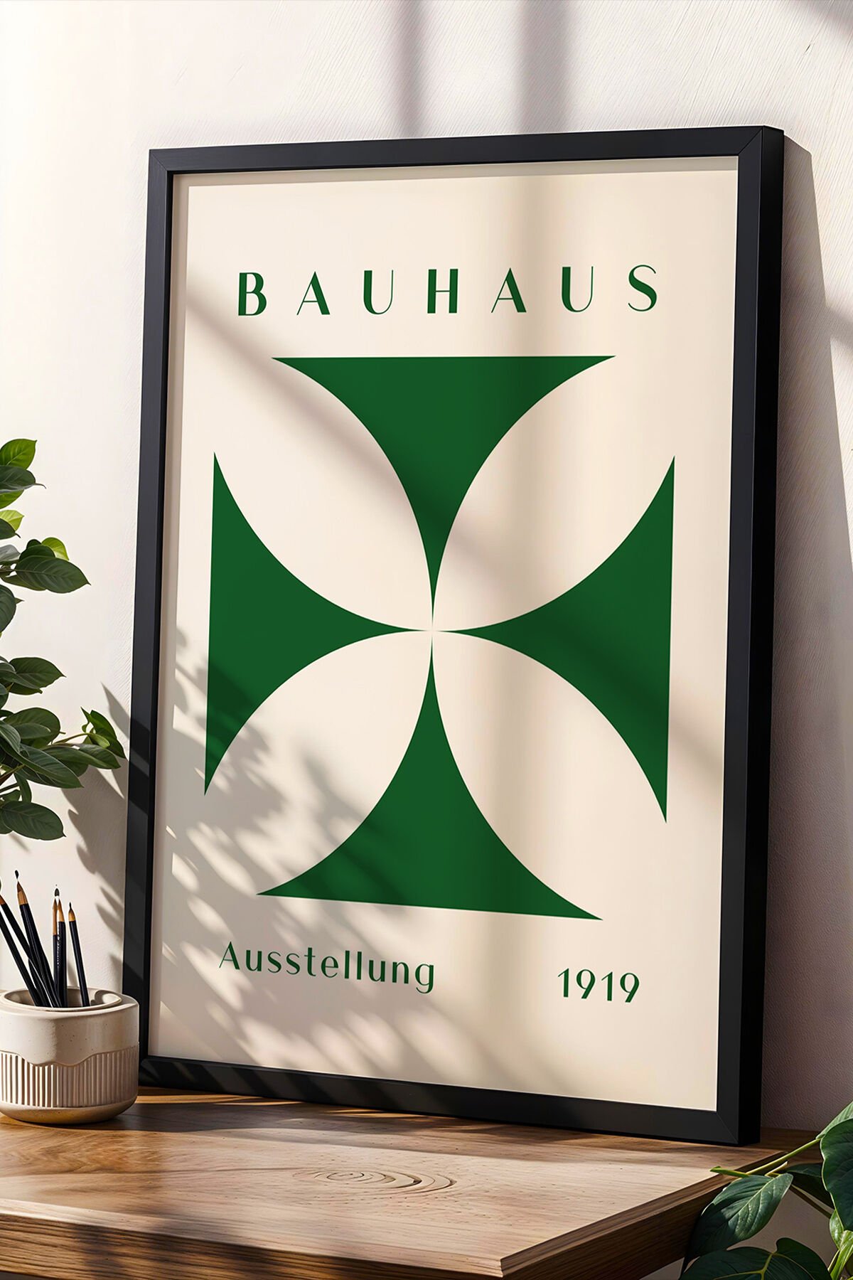 SİYAH - Yeşil Bauhaus Stili Minimalist Vintage Geometrik Sanat Abstract Ahşap Çerçeveli Duvar Tablosu