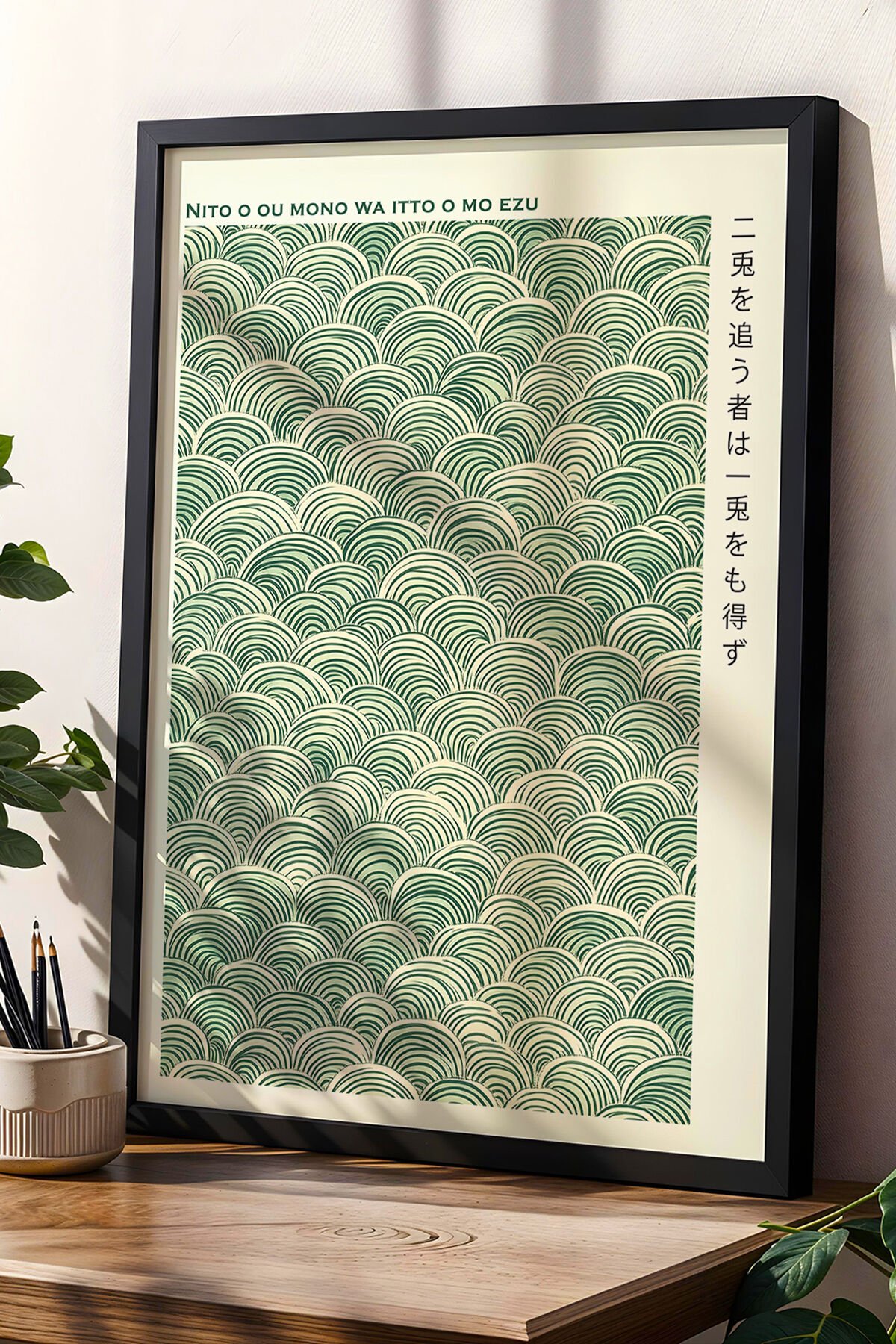 SİYAH - Yeşil Tonlarda Japon Sanatından İlham Alan Ahşap Duvar Tablosu