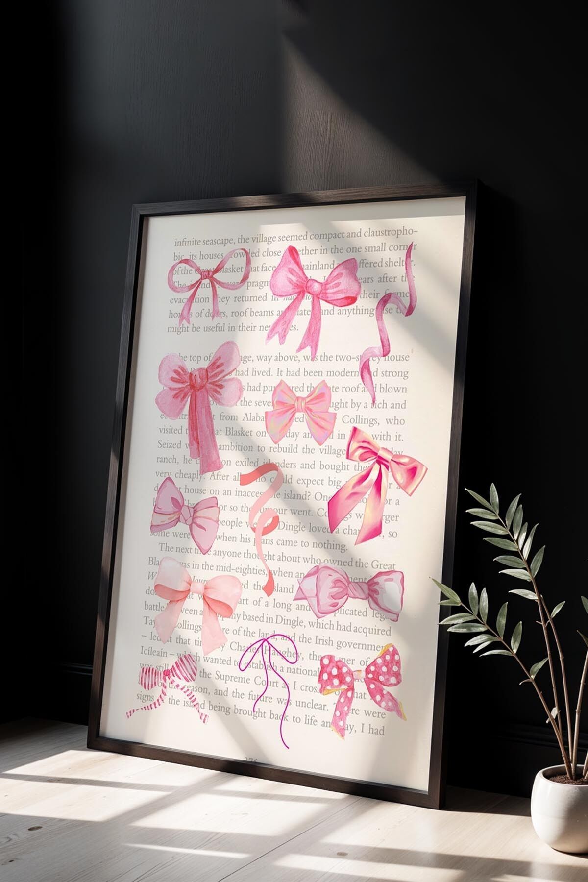 SİYAH - Zarif Çiçek Deseni Pembe Maksimalist Sanatı Ahşap Çerçeveli Duvar Tablosu