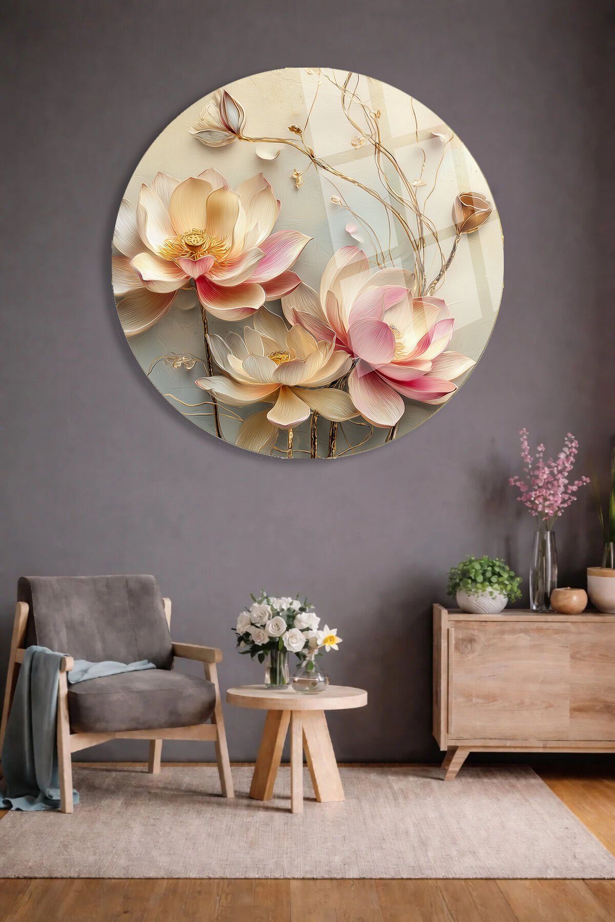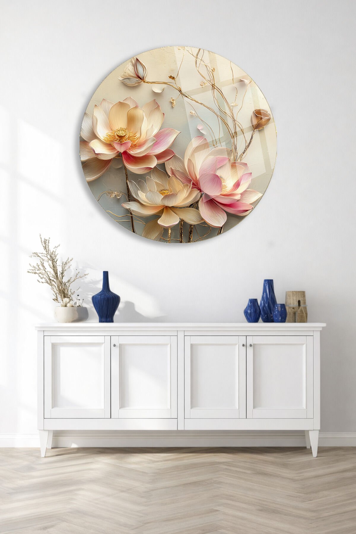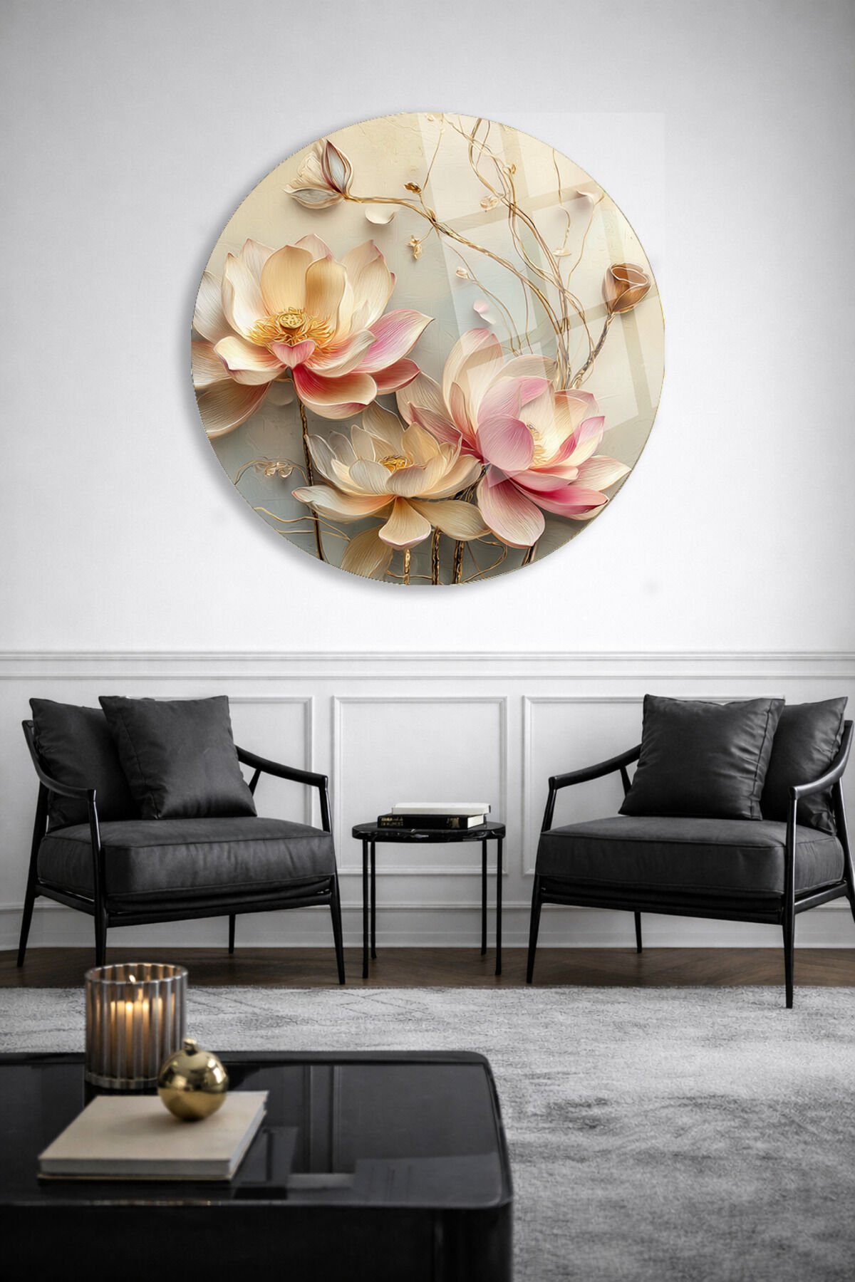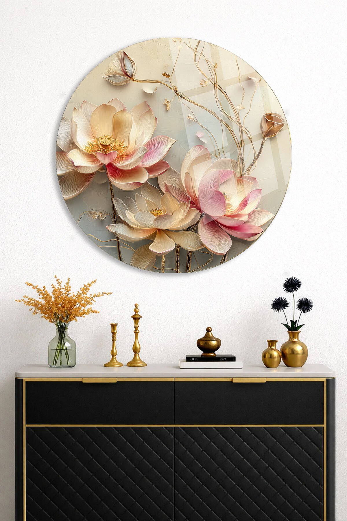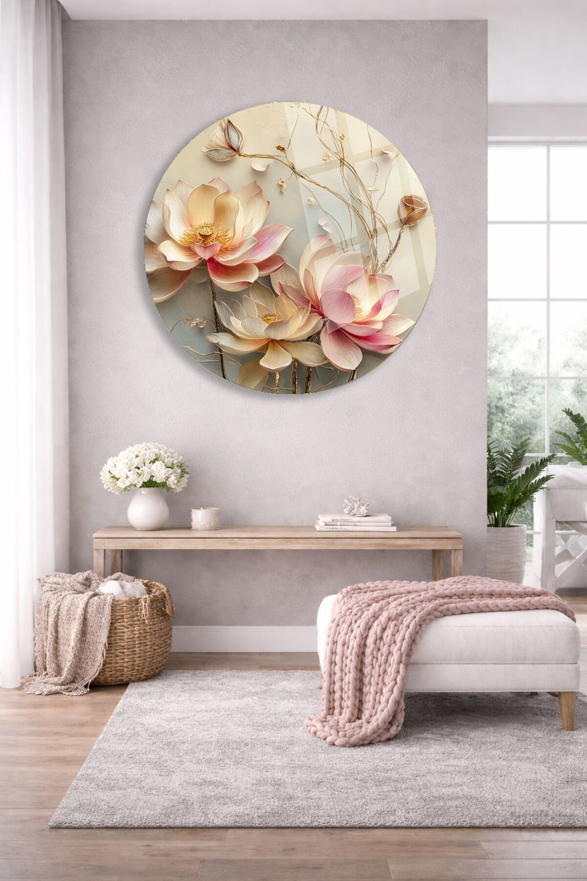SOFT TONLU ÇİÇEK DESENLİ MODERN KIRILMAZ CAM SANATSAL TABLO ULTRA CANLI RENKLER EV OFİS HEDİYESİ Pembe