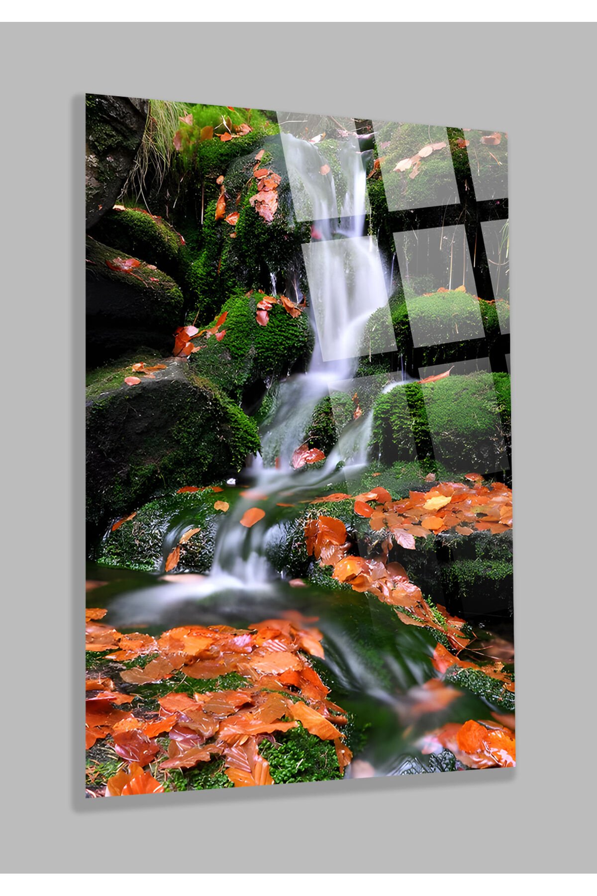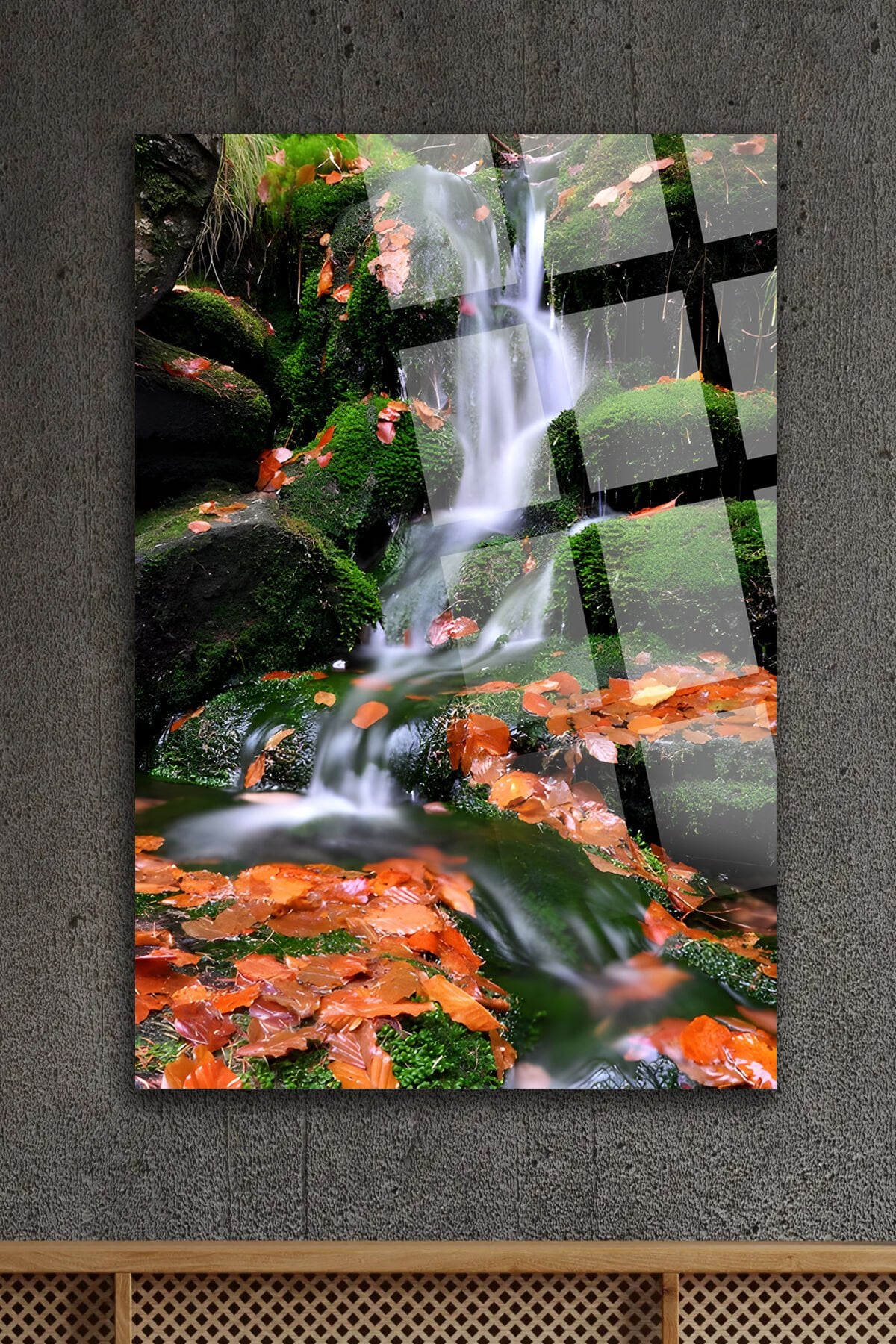 Sonbahar ve Şelale Kırılmaz Cam Tablo, Ev Ve Ofis Hediyesi Yüksek Çözünürlüklü 4mm Cam Tablo turuncu 54