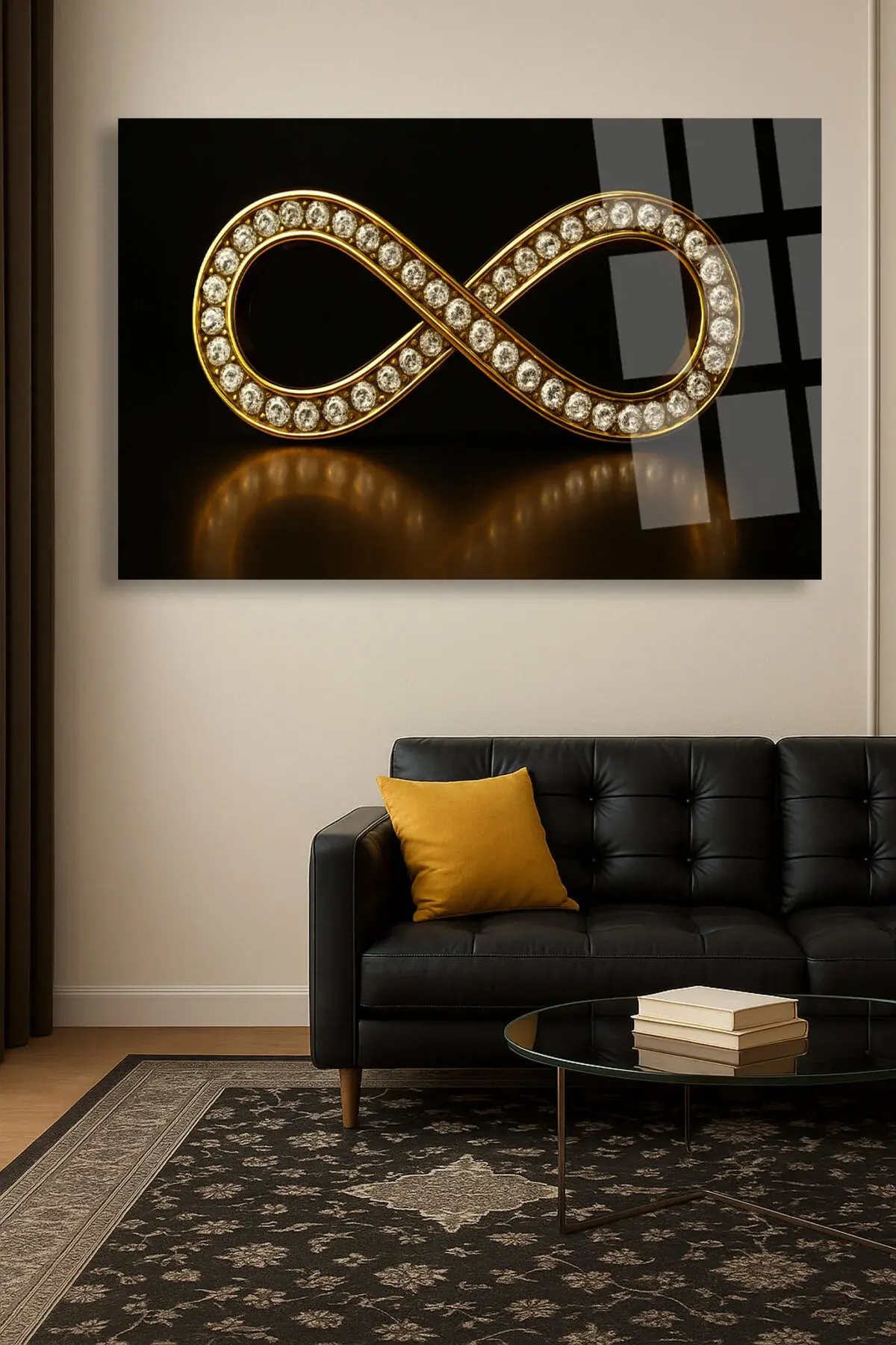SONSUZLUK İŞARET YATAY HARİKA TASARIM ULRTA CANLI RENKLER KIRILMAZ LÜKS MODERN CAM TABLO EV HEDİYESİ Siyah