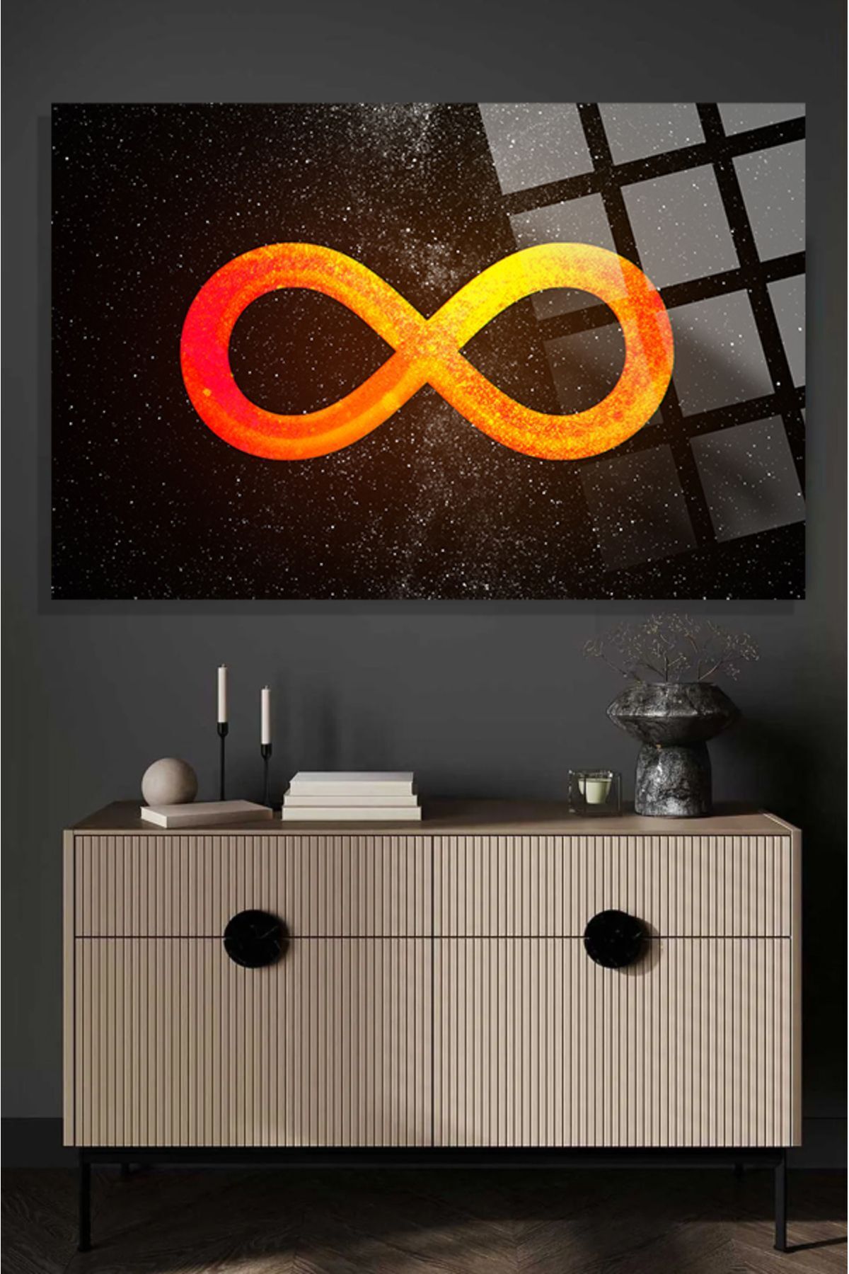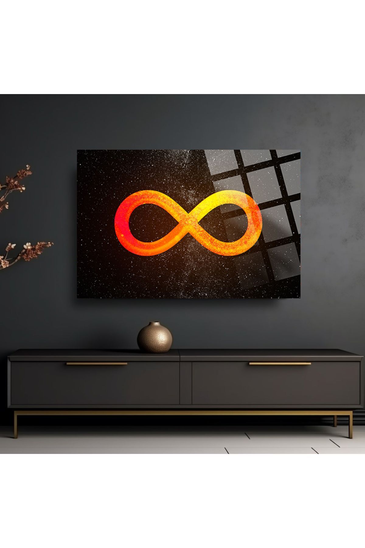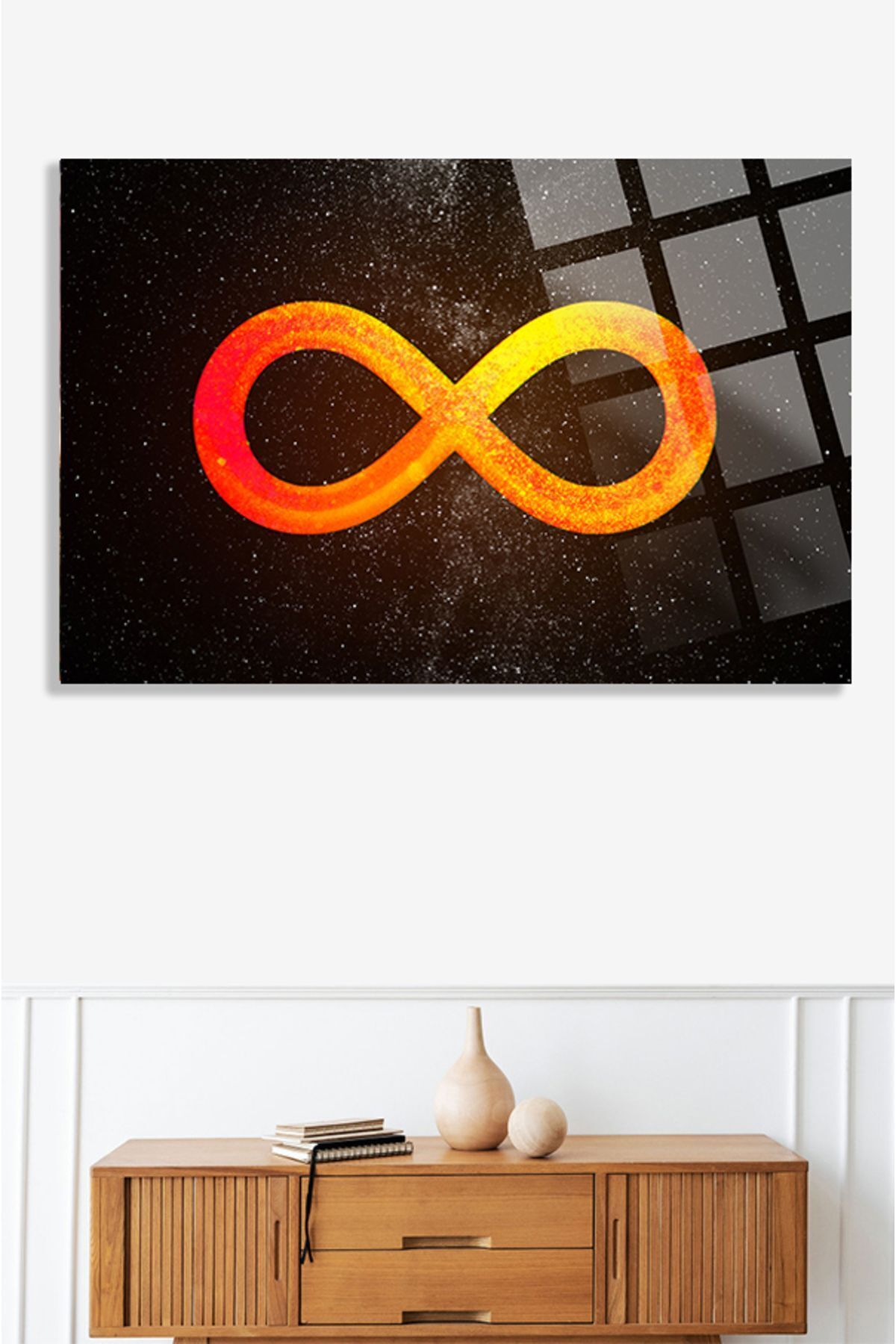 Sonsuzluk İşareti Gökyüzü Lüks 4mm Kırılmaz Temperli Yüksek Çözünürlüklü Cam Tablo turuncu