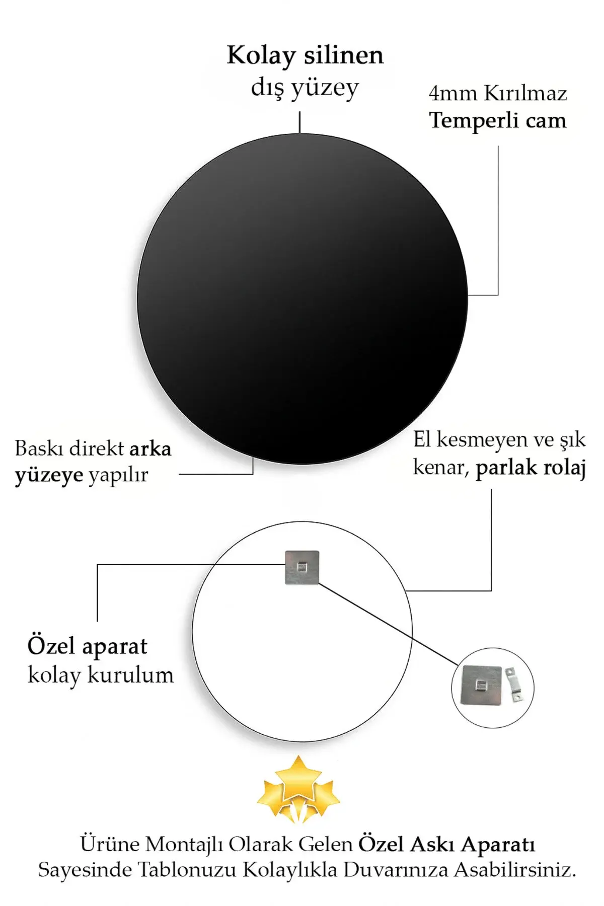 - Modern tasarımıyla evinizin dekorasyonuna şıklık katan altın geyik temalı cam tablo, mekanınıza sanatsal bir dokunuş ekler.; - Tek parça halinde sunulan bu lüks oda tablosu, kolay montaj avantajıyla zaman kazandırırken estetik görünümünden ödün vermez.; - Yüksek kaliteli cam malzemesi sayesinde uzun ömürlü kullanım vaat eder ve yıpranmaya karşı dayanıklılık sağlar.; - Çerçevesiz yapısı ile minimalist tarzınızı ön plana çıkaran bu modern cam tablo, duvarlarınızda zarif bir siluet oluşturur.; - Üretimi Türkiye'de gerçekleştirilen bu sanatsal çalışma, yerel kaynaklı malzemelerle üretilmiş olup ulusal gururu evinizin her köşesine taşır.