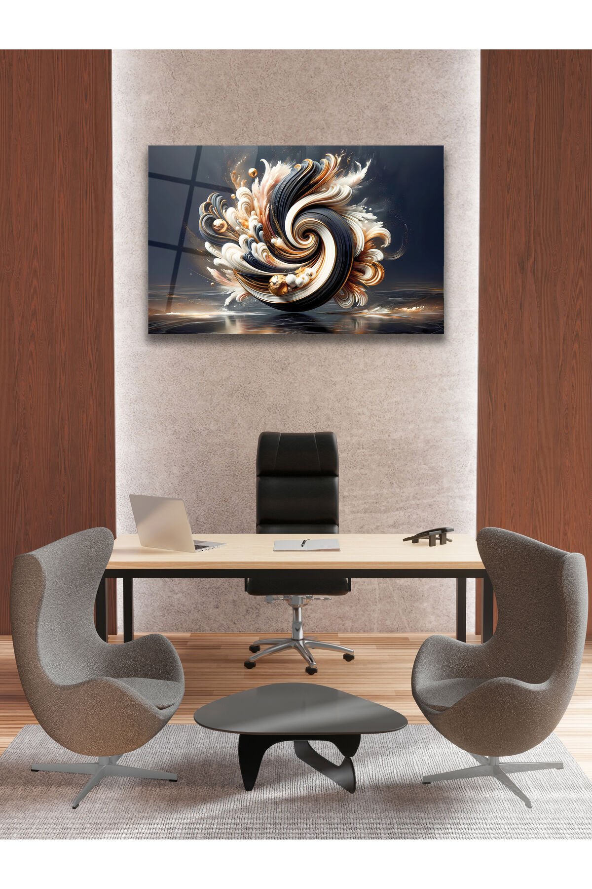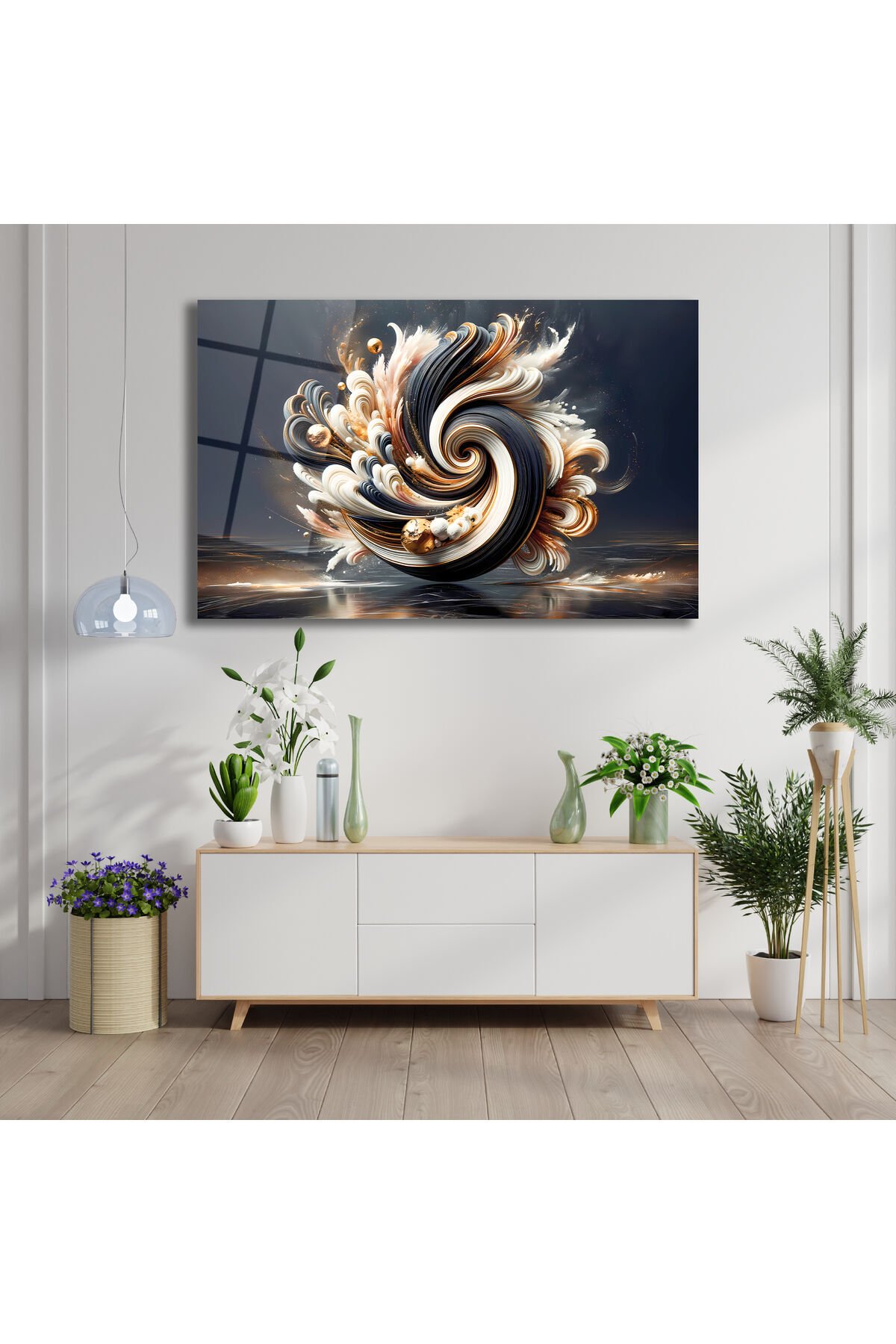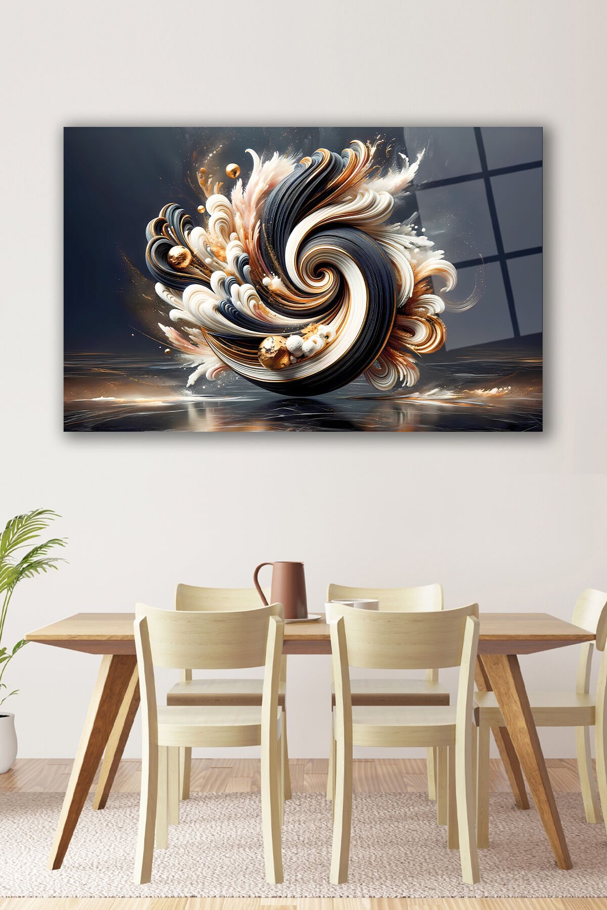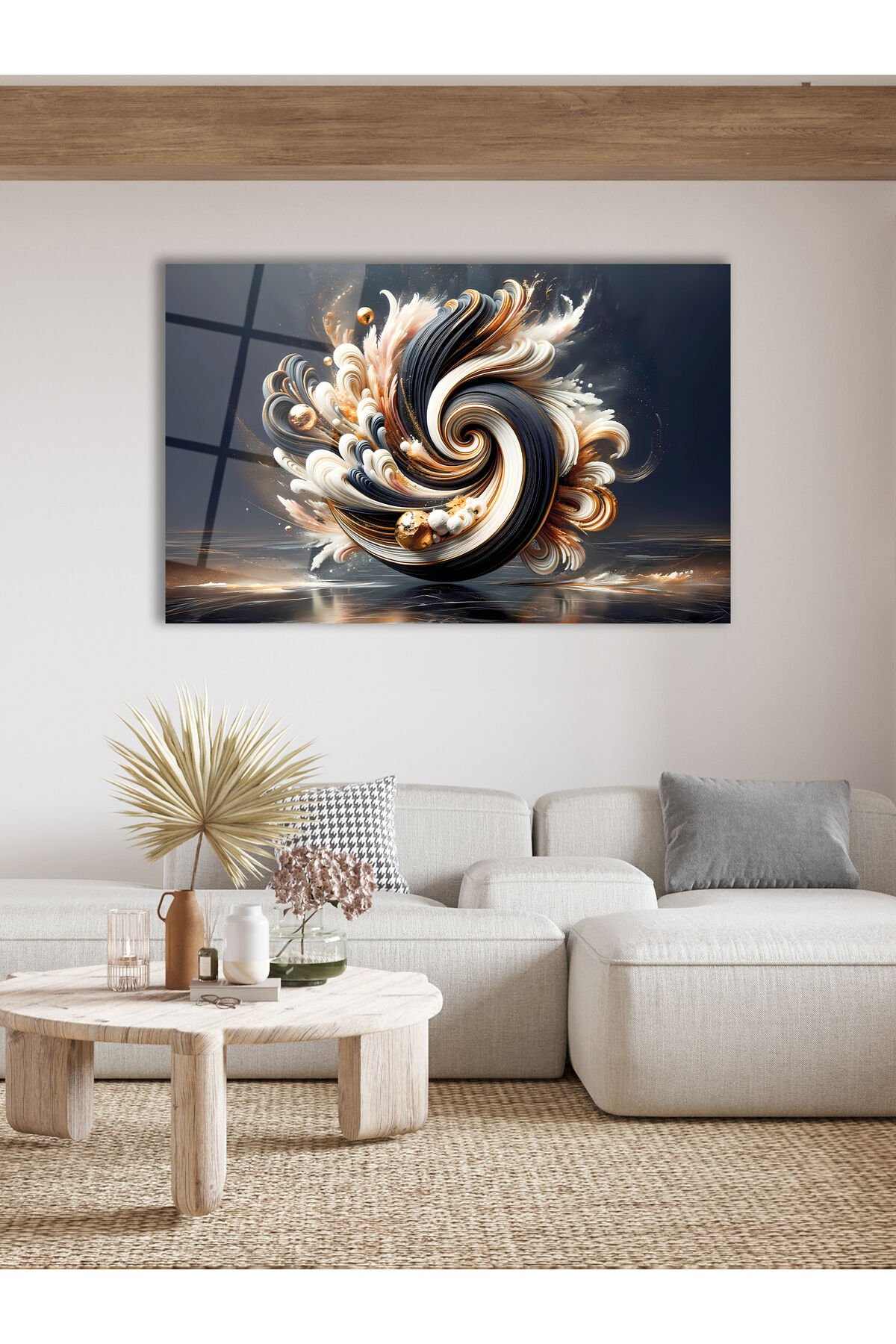Soyut Siyah Beyaz Gold Cam Tablo, Modern Ev Ofis Salon Duvar Dekoru, Hediyelik Tablo Dekor Siyah Beyaz Gold