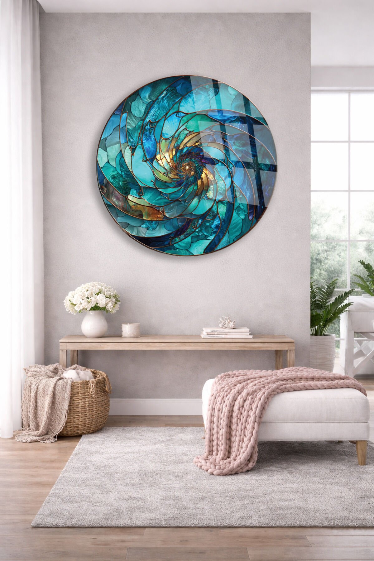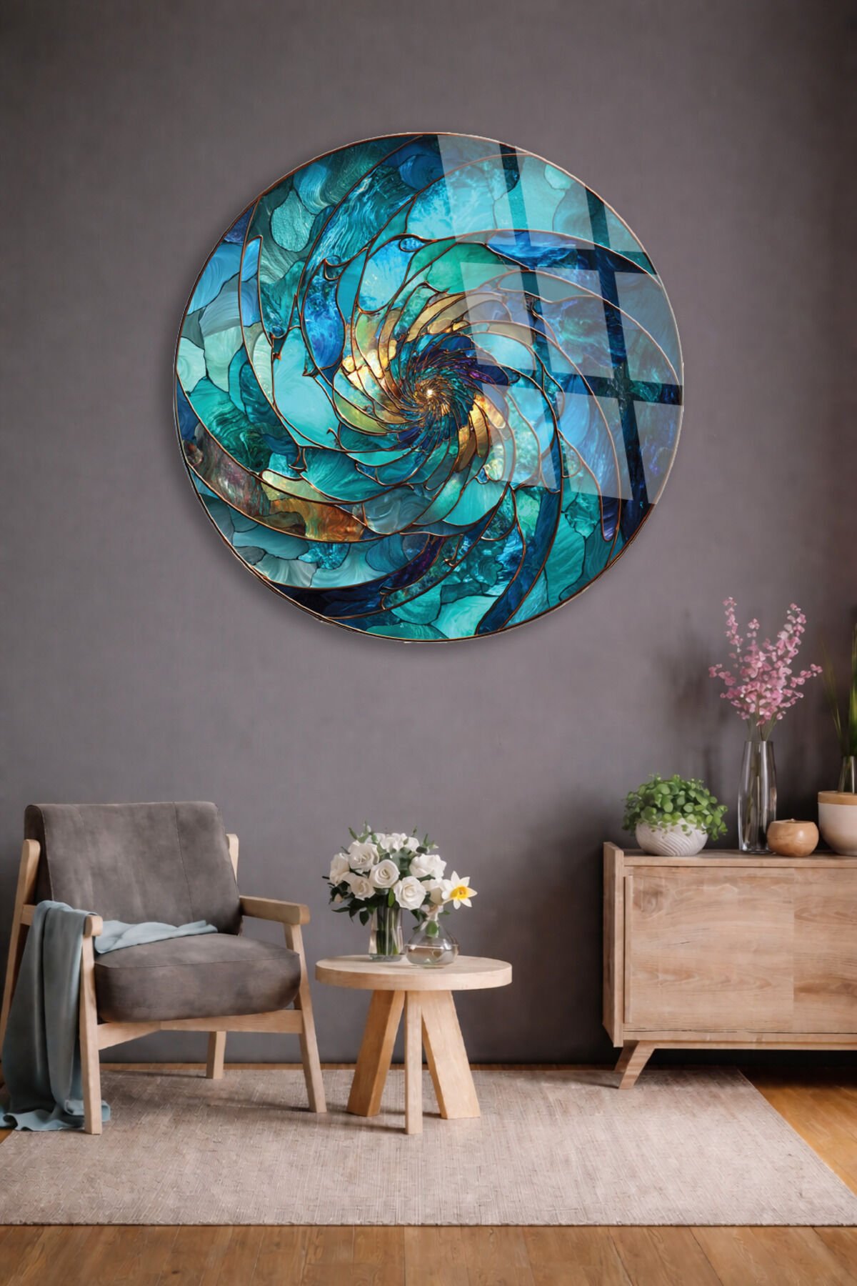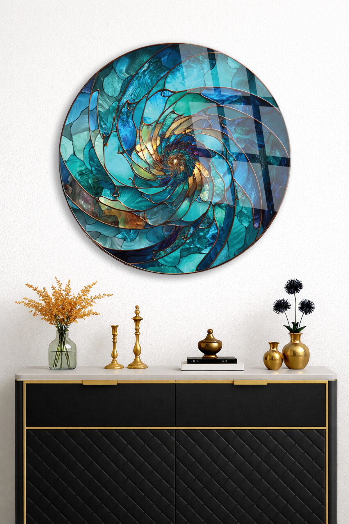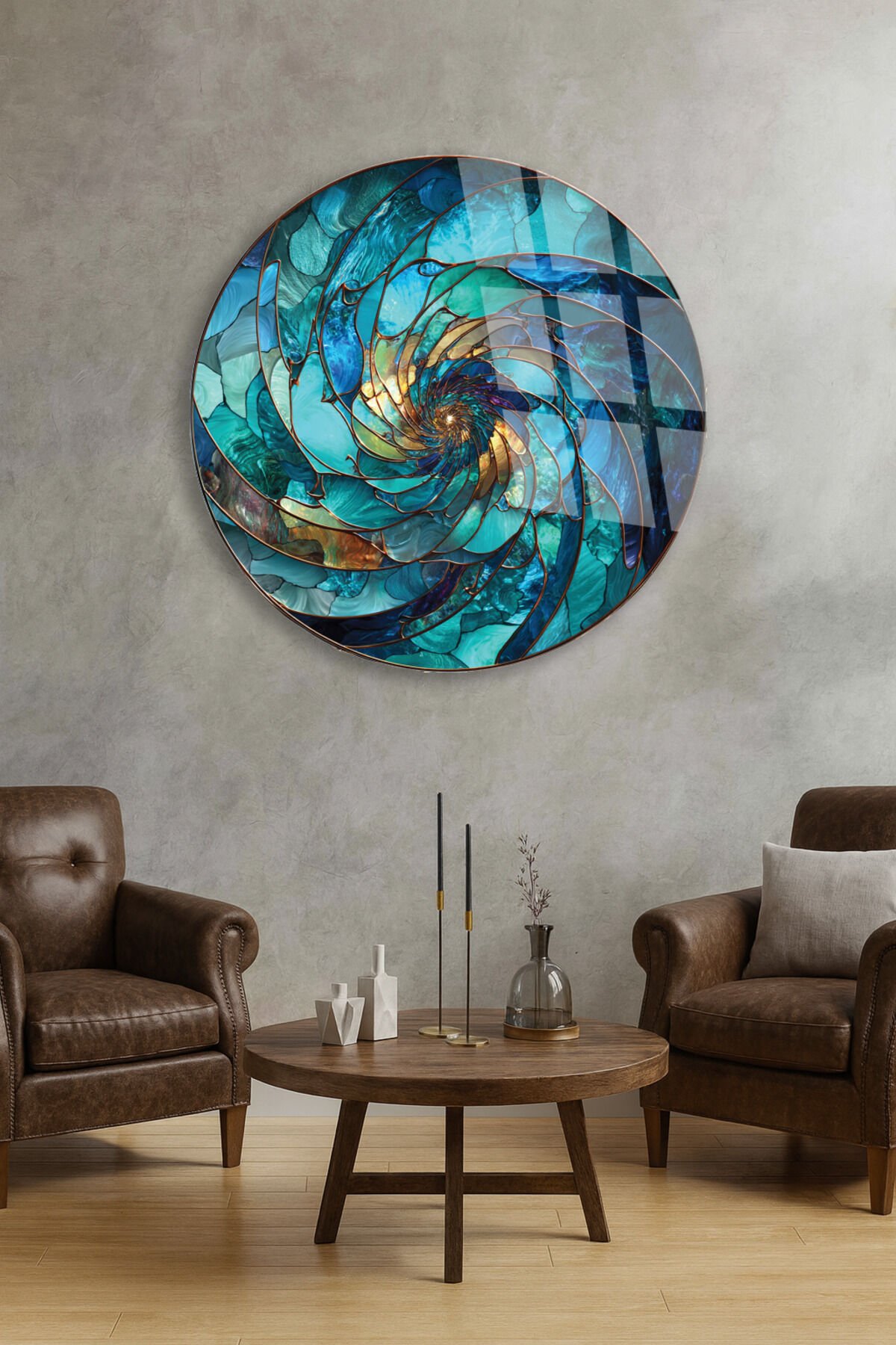 SOYUT TURKUAZ SPİRAL DESEN MODERN KIRILMAZ CAM TABLO Turkuaz
