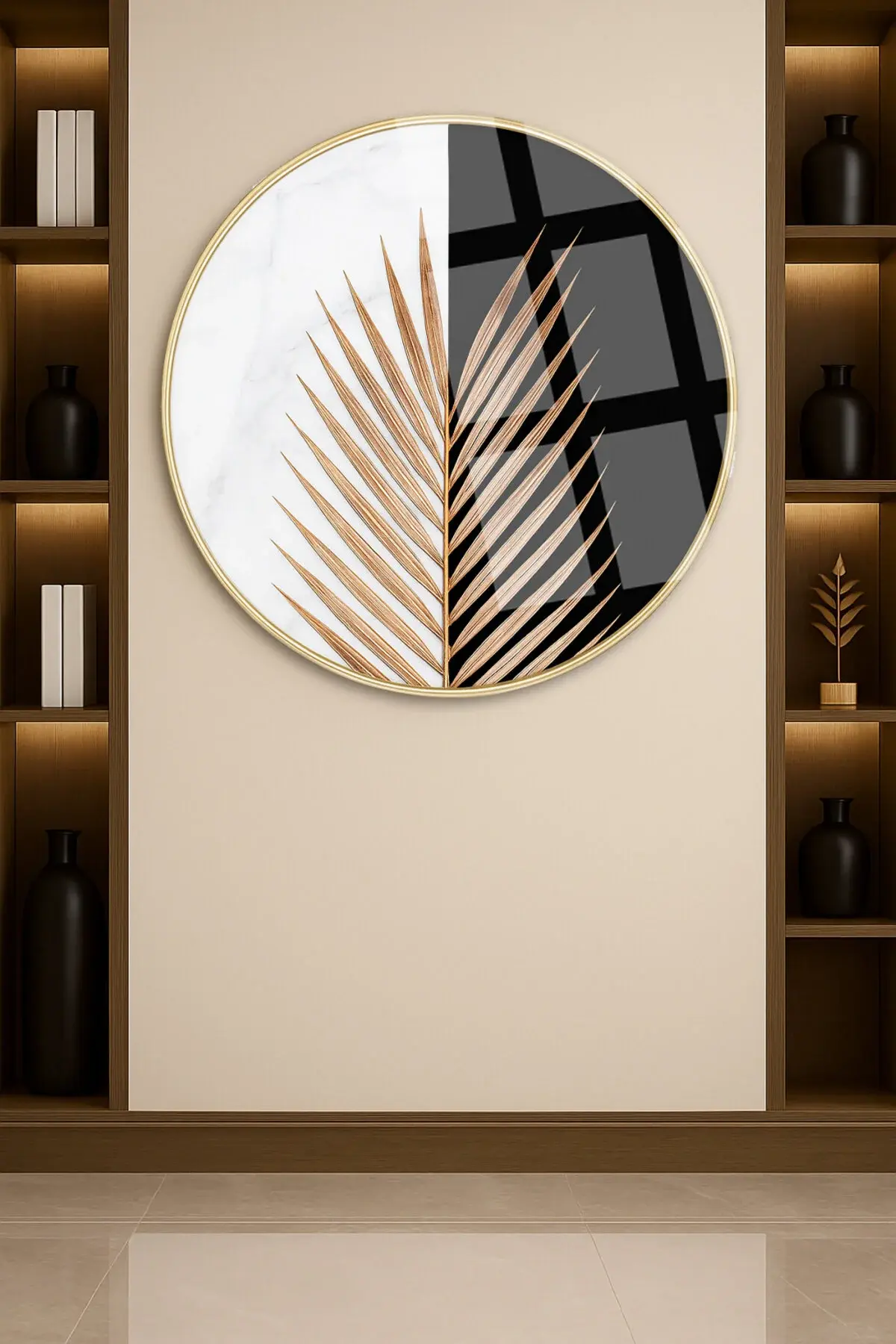 SOYUT YAPRAK TASARIMI TABLOSU MODERN TABLO KIRILMAZ LÜKS CAM TABLO YUVARLAK CAM TABLO EV HEDİYESİ Siyah