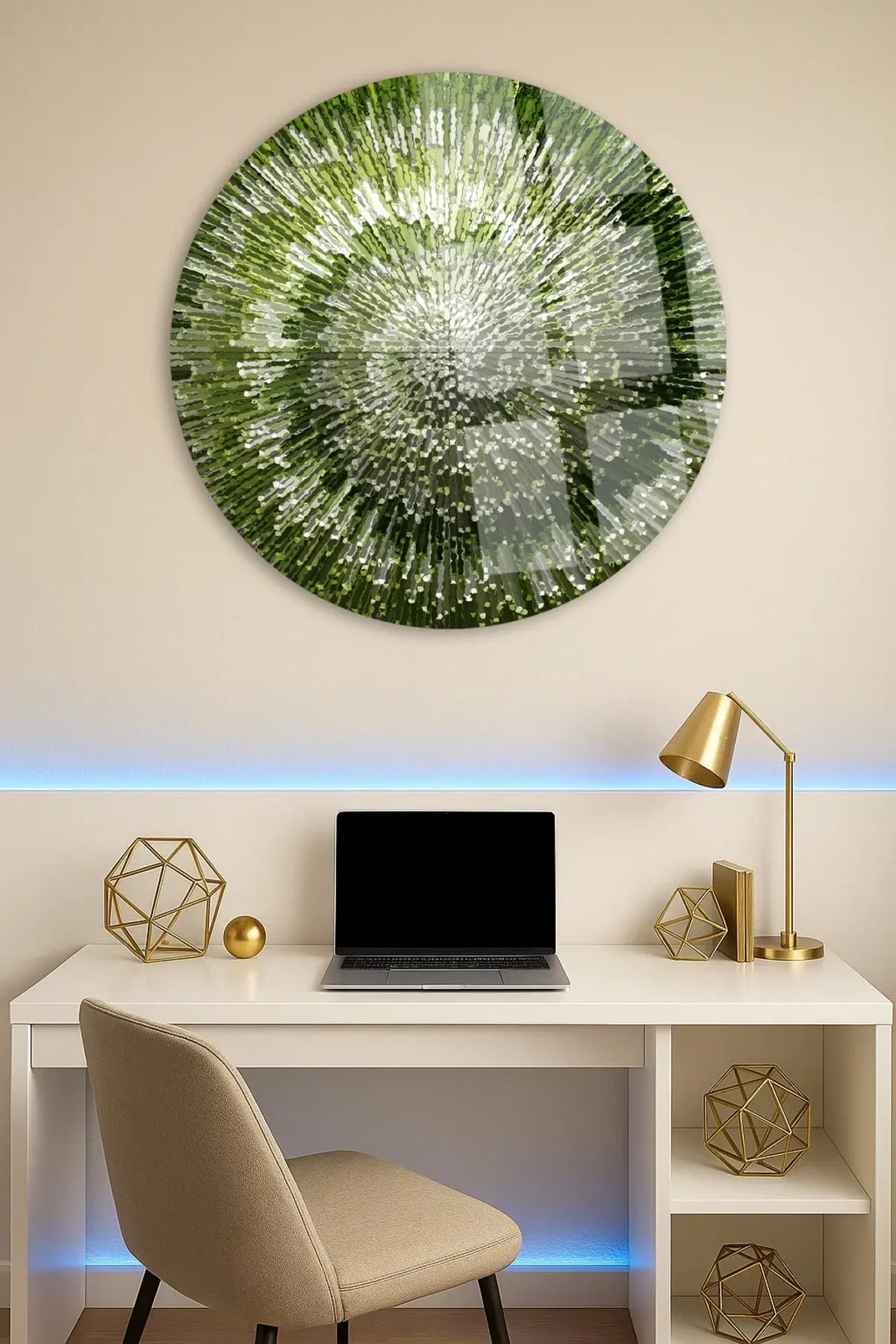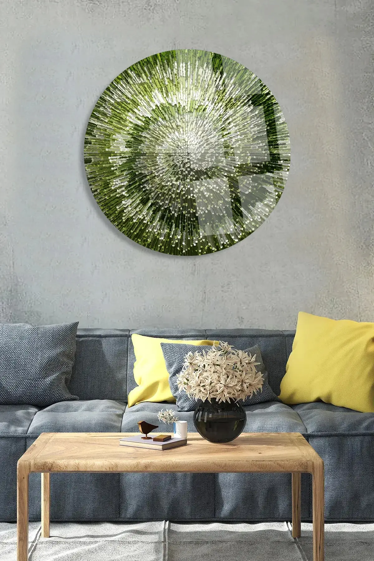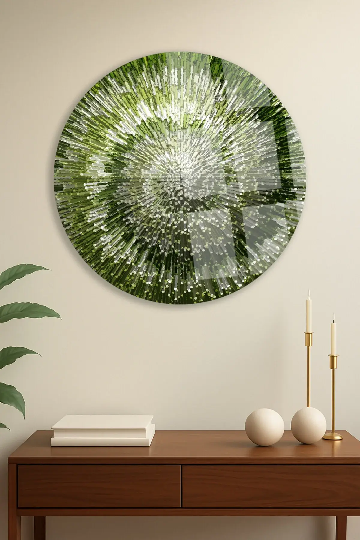 SOYUT YEŞİL DÜZEN TASARIMI KIRILMAZ LÜKS CAM TABLO YUVARLAK CAM TABLO EV HEDİYESİ