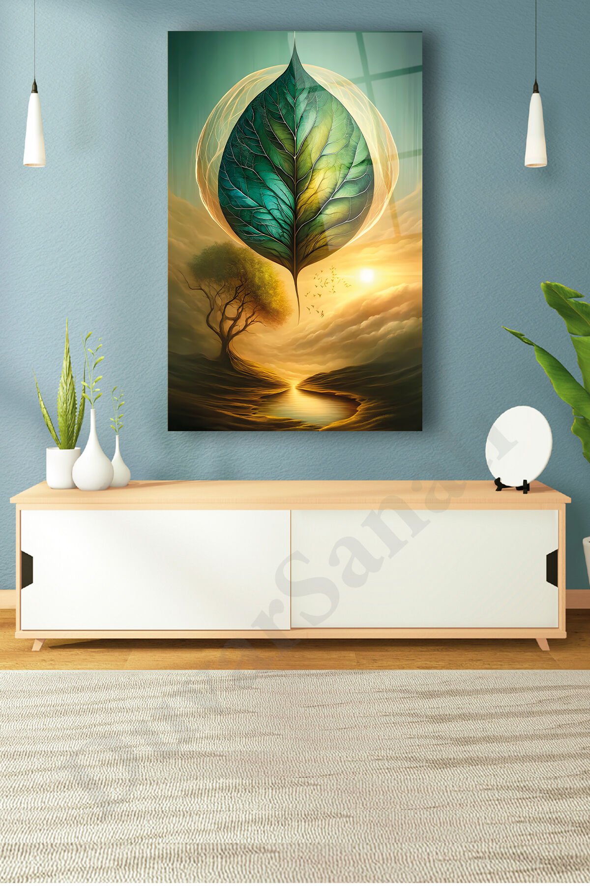 Duvar Sanatı cam tablolar 4 mm kalınlığında temper işlemi (ısıl işlem) görmüştür. Kenarları rodajlanmış (kesiciliği giderilmiş) yüksek kaliteli düz camlardan oluşmaktadır. -Normal camlara göre kırılmaya 10 kat daha dayanıklıdır. Gönderilirken özel korumalı ambalaj, tabloya yapıştırılmış olarak çelik aparat ve duvara asmak için vida-dübel ile gönderilmektedir. ; Duvar Sanatı tarafından hazırlanan özel tasarımlar doğrudan cam yüzeyine uv baskı tekniğiyle yüksek çözünürlüklü makinalarımız tarafından uygulanır. Bu nedenle yüksek kaliteli, mükemmel bir görüntü derinliği sağlar. ; -Görsellerimiz camın arka yüzeyine doğrudan uv cam boyası kullanılarak basılır ve özel koruma beyaz uv boya ile arka yüzey kapatılır. Baskı cam ile arka koruma boyası arasında kalır. ; -Cam tablolar zamanla solmazlar ve renkler canlılığını hiç kaybetmez. ; -Özellikle ev ve ofis dekorasyonunda büyük tablolar duvarlarda çok şık bir görünüm sağlarlar. ; -Dekoratif ve zarif tablolar ev ve ofis duvarlarınıza estetik bir hava katar. ; -Temizliği son derece kolay olan cam tablolarımızı nemli bez ile gönül rahatlığıyla silebilirsiniz. Özel çelik askı aparatı sayesinde ürünlerimizin duvardan kazara düşme olasılığı çok düşüktür. ; -Ürünle birlikte gönderdiğimiz vida ve dübel ile kolayca duvara monte edebilirsiniz. Ürün asıldığında duvardan 2 cm önde durmaktadır. ; -Kargo esnasında yaşanacak kırılma durumunda ücretsiz yeni ürün gönderimi yapmaktayız. ;