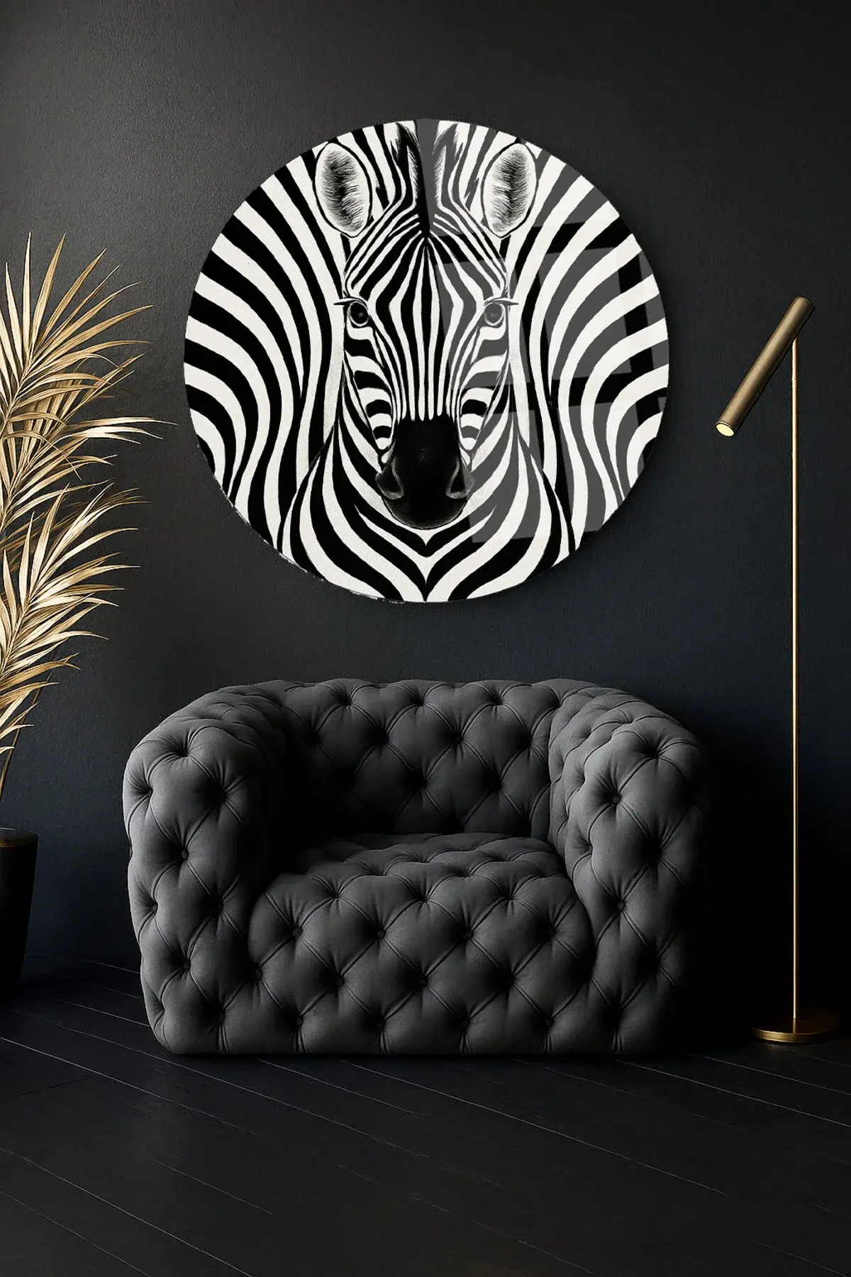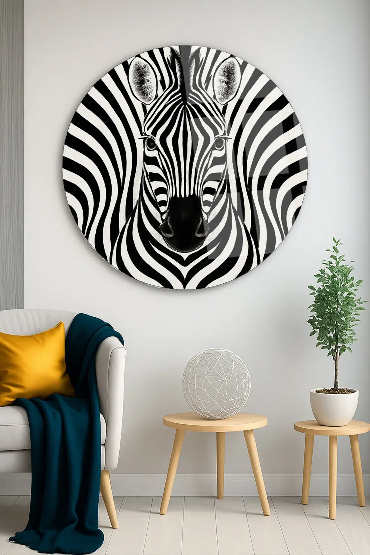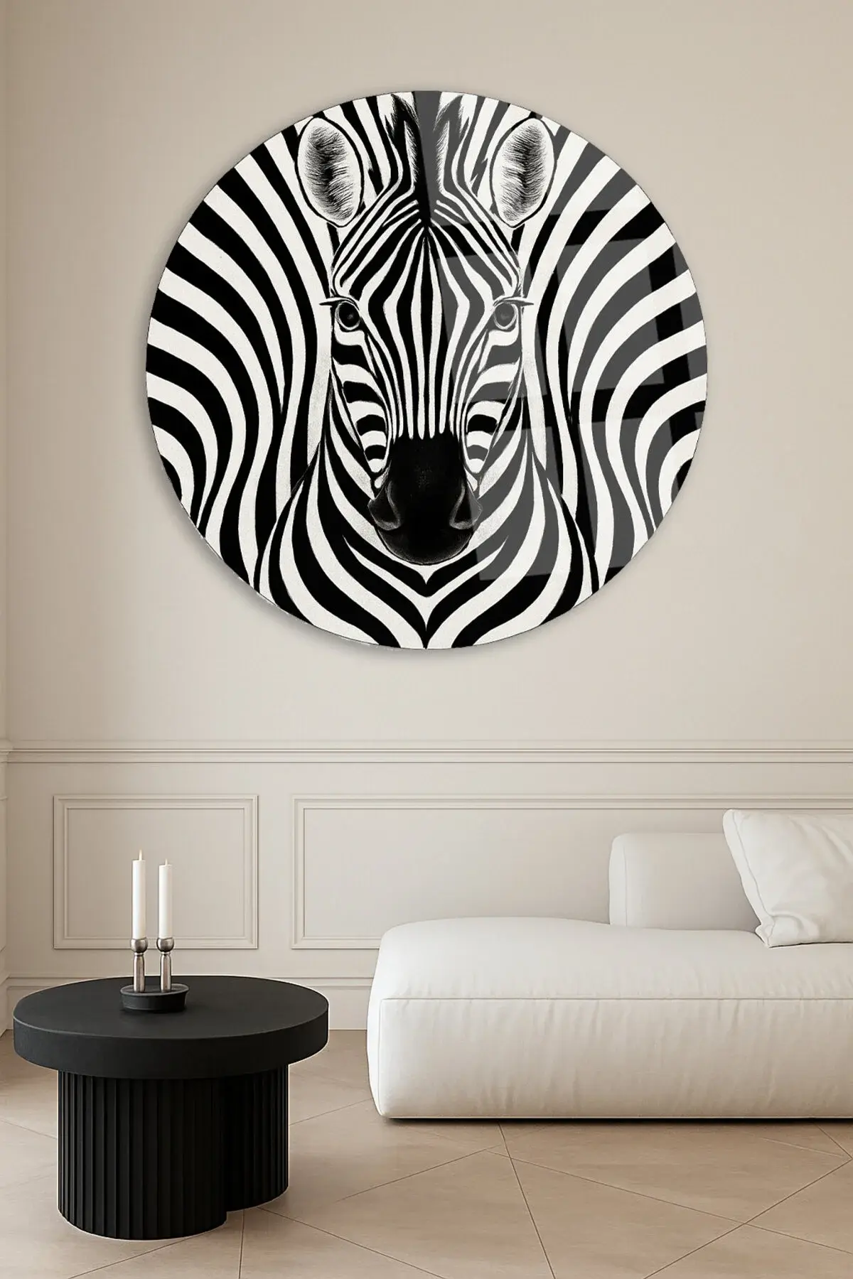 SOYUT ZEBRA TASARIMI MODERN YUVARLAK KIRILMAZ CAM TABLO LÜKS HEDİYE TABLO Beyaz