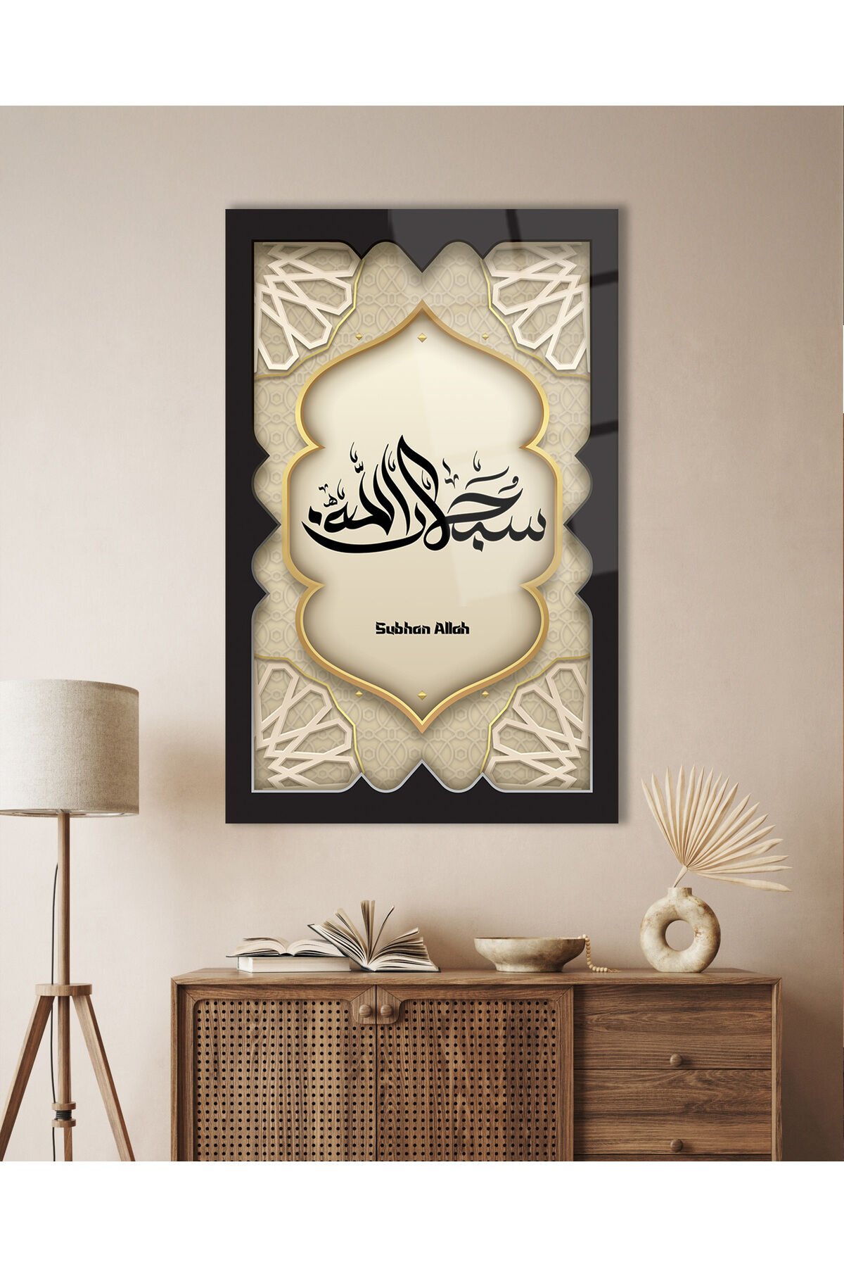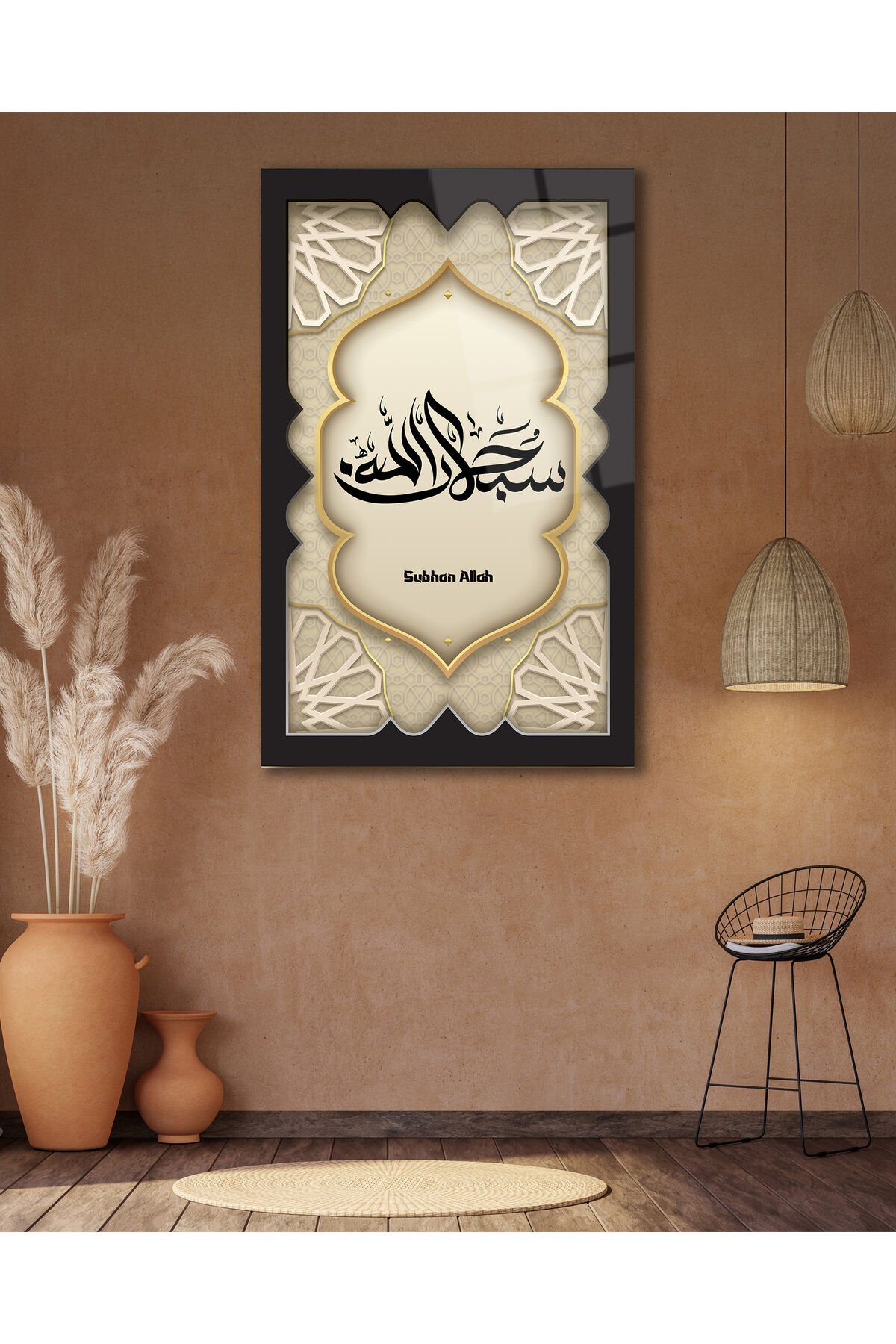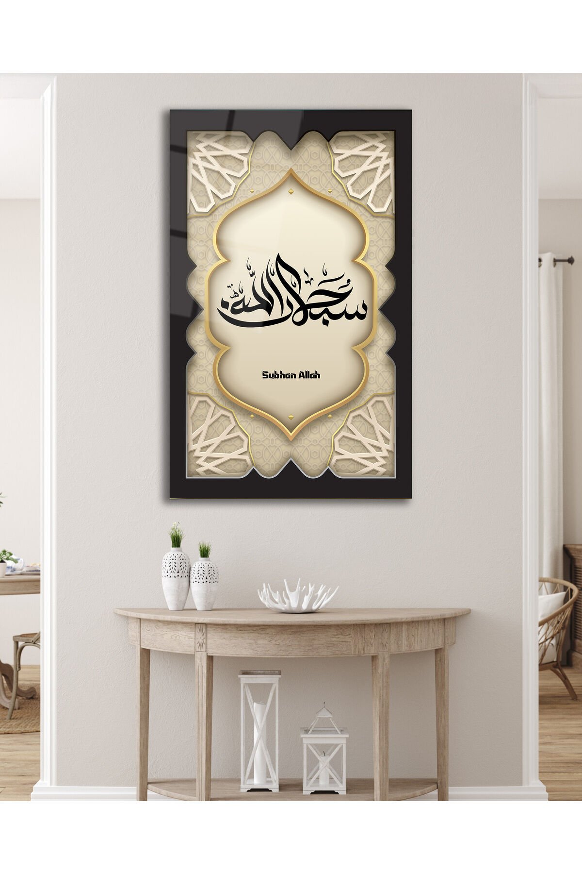 SübhanAllah Dikey Cam Tablo, Dini İslami Modern Ev Ofis Salon Dekoru , Hediyelik Büyük Tablo Siyah