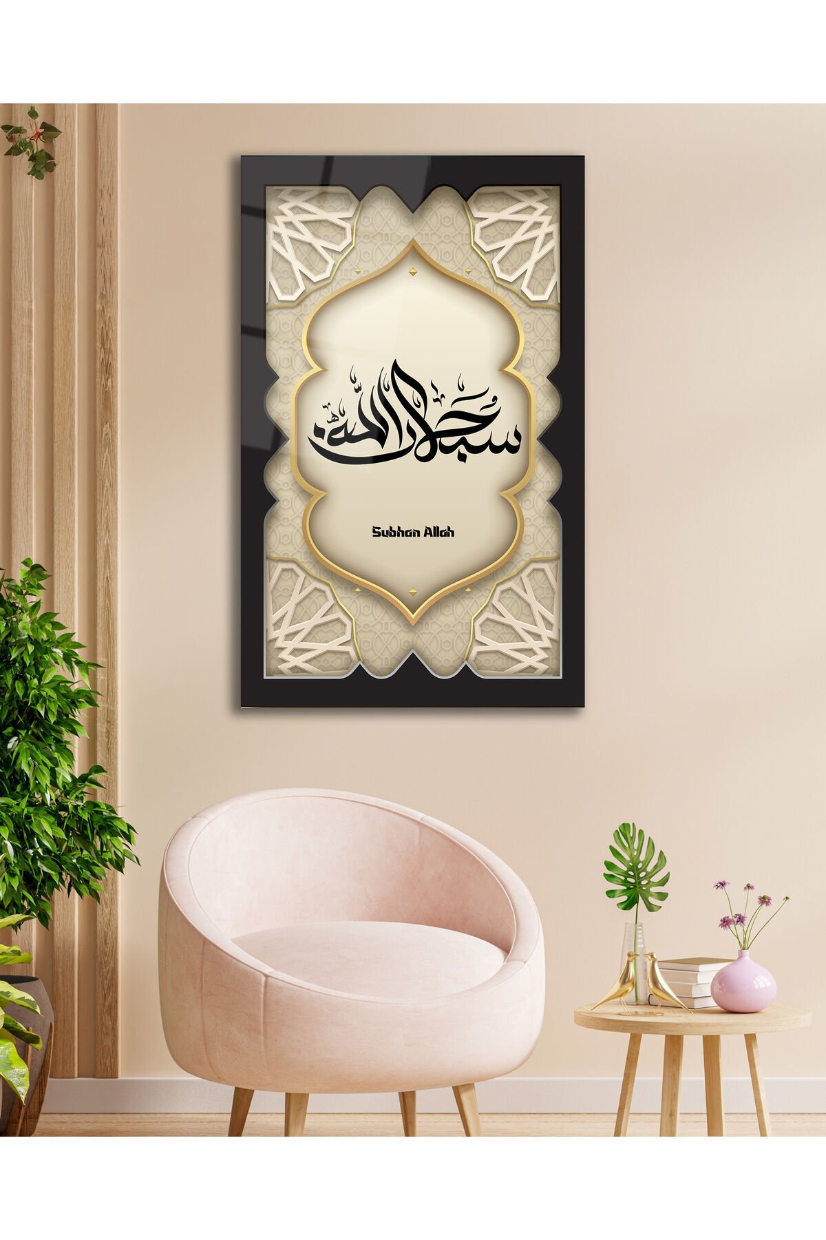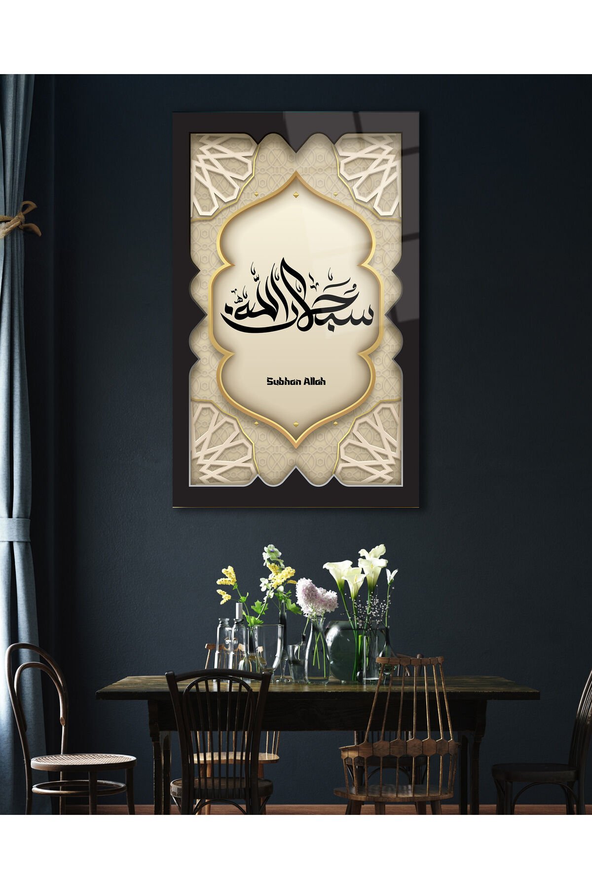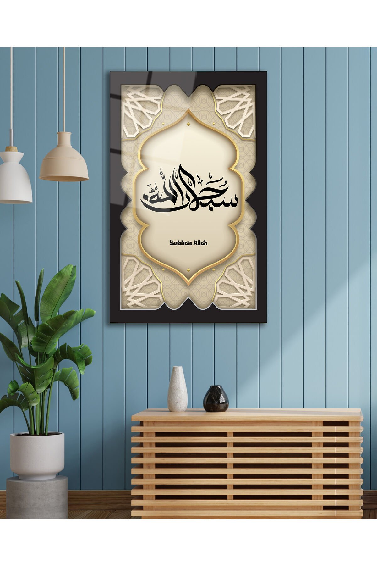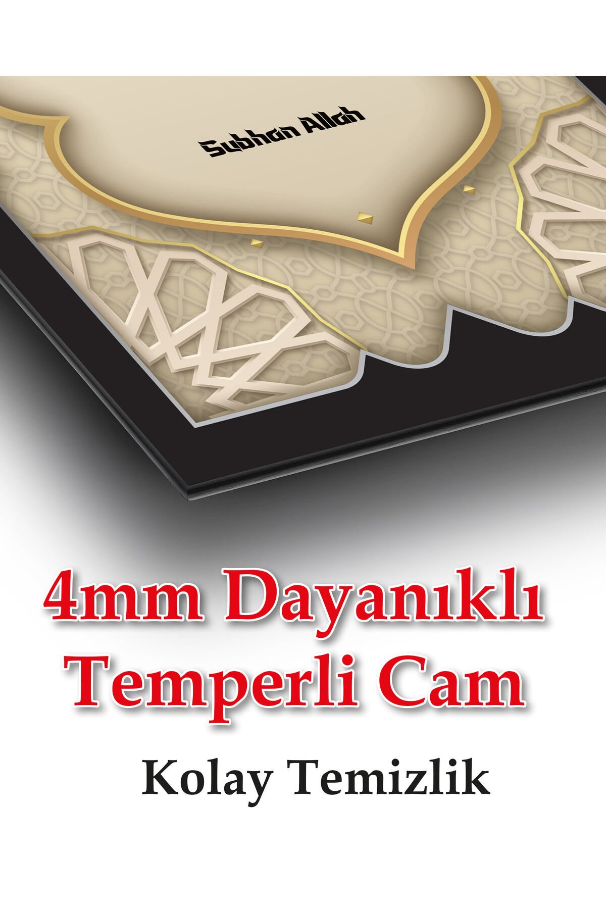 SübhanAllah Dikey Cam Tablo, Dini İslami Modern Ev Ofis Salon Dekoru , Hediyelik Büyük Tablo Siyah